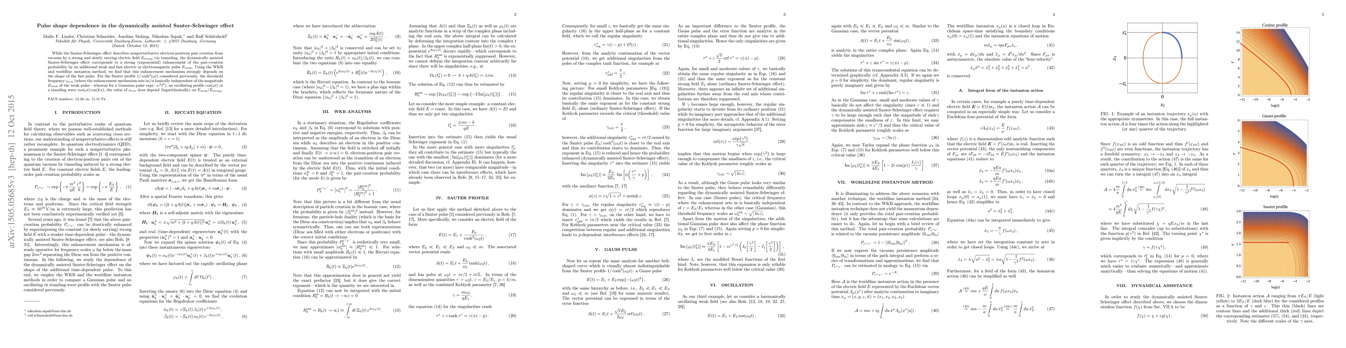 While the Sauter-Schwinger effect describes nonperturbative electron-positron pair creation from vacuum by a strong and slowly varying electric field $E_{\mathrm{strong}}$ via tunneling, the dynamically assisted Sauter-Schwinger effect corresponds to a strong (exponential) enhancement of the pair-creation probability by an additional weak and fast electric or electromagnetic pulse $E_{\mathrm{weak}}$. Using the WKB and worldline instanton method, we find that this enhancement mechanism strongly depends on the shape of the fast pulse. For the Sauter profile $1/\cosh^2(\omega t)$ considered previously, the threshold frequency $\omega_{\mathrm{crit}}$ (where the enhancement mechanism sets in) is basically independent of the magnitude $E_{\mathrm{weak}}$ of the weak pulse---whereas for a Gaussian pulse $\exp(-\omega^2t^2)$, an oscillating profile $\cos(\omega t)$ or a standing wave $\cos(\omega t)\cos(kx)$, the value of $\omega_{\mathrm{crit}}$ does depend (logarithmically) on $E_{\mathrm{weak}}/E_{\mathrm{strong}}$.