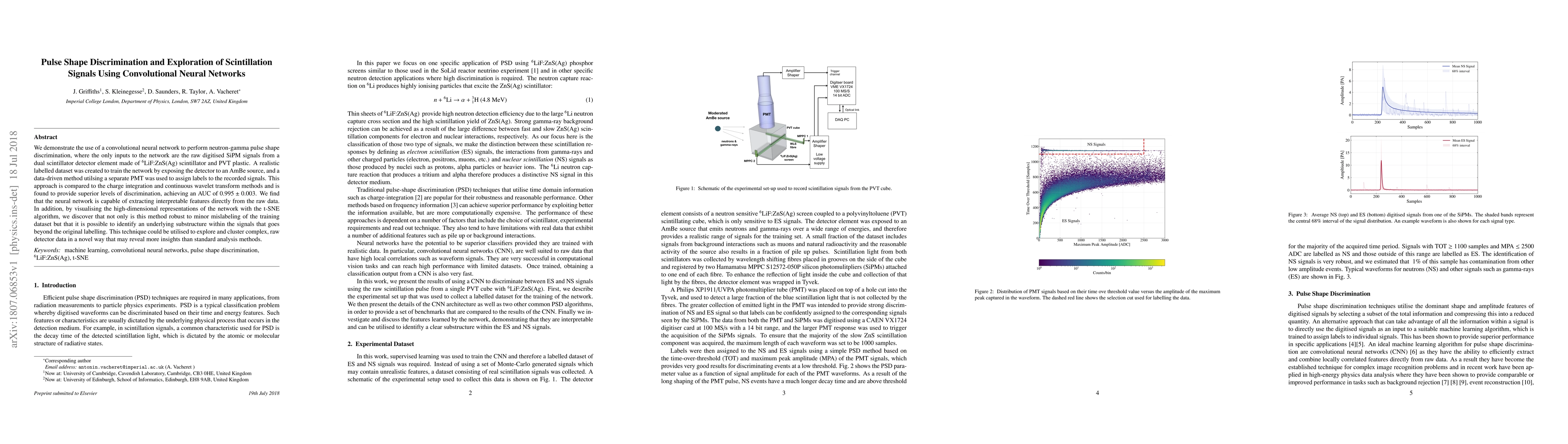 A convolutional neural network (CNN) architecture was developed to classify digitized signals with superior performance compared to traditional Pulse Shape Discrimination (PSD) methods.