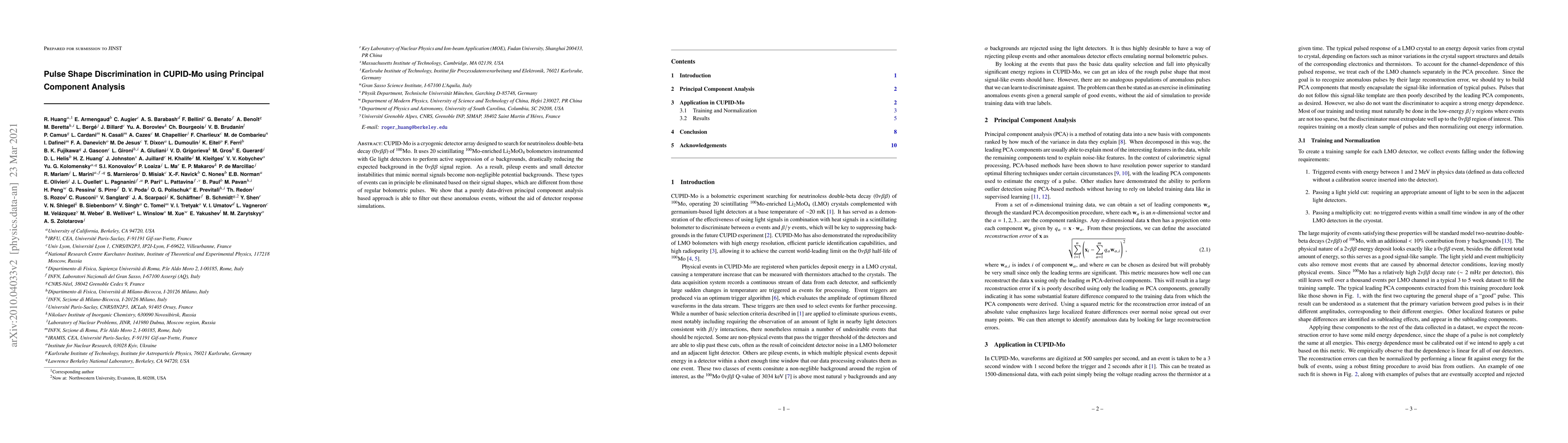 Researchers developed a data-driven approach using principal component analysis to filter out anomalous events in CUPID-Mo detector arrays, reducing background noise from pileup events and small detector instabilities.