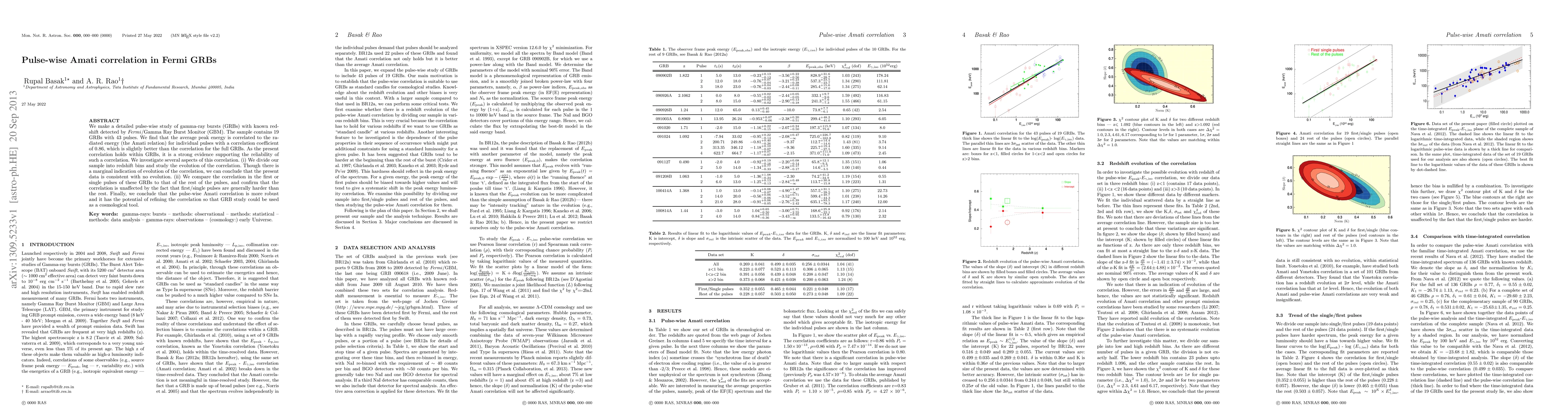 The study examines 19 Fermi GRBs with known redshift, finding a strong pulse-wise Amati correlation (coeff. 0.86) between peak energy and radiated energy. The correlation holds within GRBs, suggesting its reliability as a cosmological tool, with no significant evolution observed across redshift bins.