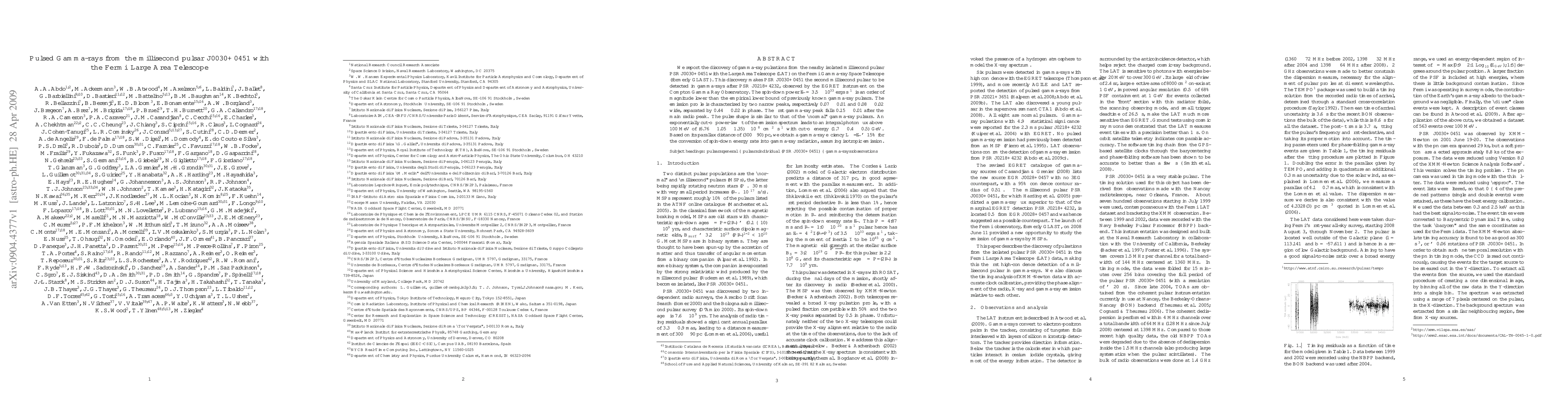 We report the discovery of gamma-ray pulsations from the nearby isolated millisecond pulsar PSR J0030+0451 with the Large Area Telescope (LAT) on the \emph{Fermi} Gamma-ray Space Telescope (formerly GLAST). This discovery makes PSR J0030+0451 the second millisecond pulsar to be detected in gamma-rays after PSR J0218+4232, observed by the EGRET instrument on the Compton Gamma Ray Observatory. The spin-down power $\dot E = $ 3.5 $\times$ 10$^{33}$ ergs s$^{-1}$ is an order of magnitude lower than the empirical lower bound of previously known gamma-ray pulsars. The emission profile is characterized by two narrow peaks, respectively 0.07 $\pm$ 0.01 and 0.08 $\pm$ 0.02 wide, separated by 0.44 $\pm$ 0.02 in phase. The first gamma-ray peak falls 0.15 $\pm$ 0.01 after the main radio peak. The pulse shape is similar to that of the "normal" gamma-ray pulsars. An exponentially cut-off power-law fit of the emission spectrum leads to an integral photon flux above 100 MeV of (6.76 $\pm$ 1.05 $\pm$ 1.35) $\times 10^{-8}$ cm$^{-2}$ s$^{-1}$ with cut-off energy (1.7 $\pm$ 0.4 $\pm$ 0.5) GeV. Based on its parallax distance of $(300 \pm 90)$ pc, we obtain a gamma-ray efficiency $L_\gamma / \dot{E} \simeq 15%$ for the conversion of spin-down energy rate into gamma-ray radiation, assuming isotropic emission.