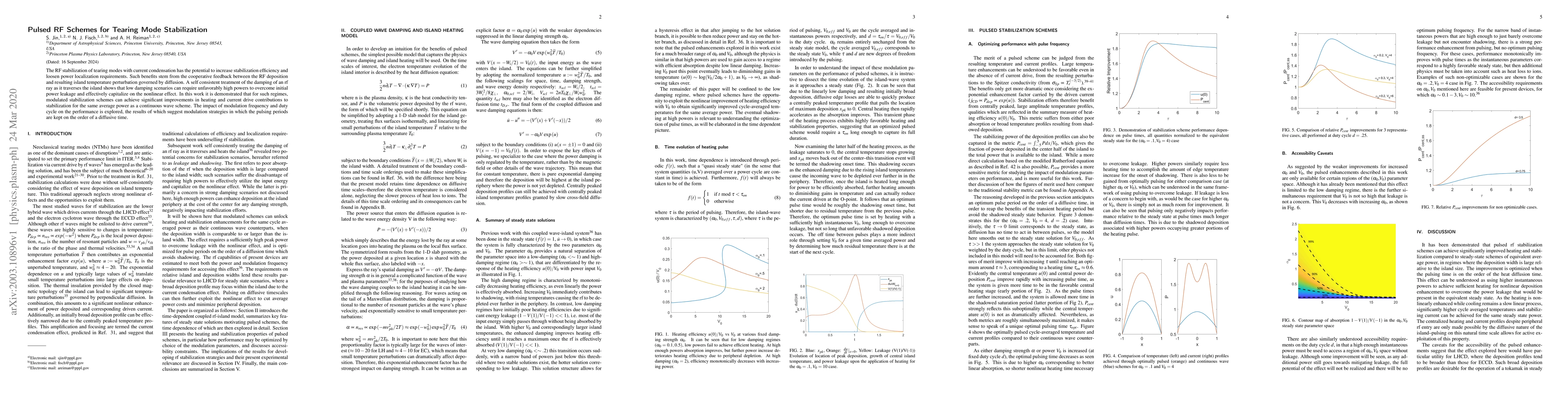This paper investigates pulsed RF schemes for tearing mode stabilization, showing that modulated approaches can significantly enhance heating and current drive efficiency compared to continuous wave methods, especially when the modulation frequency and duty cycle align with diffusive timescales.