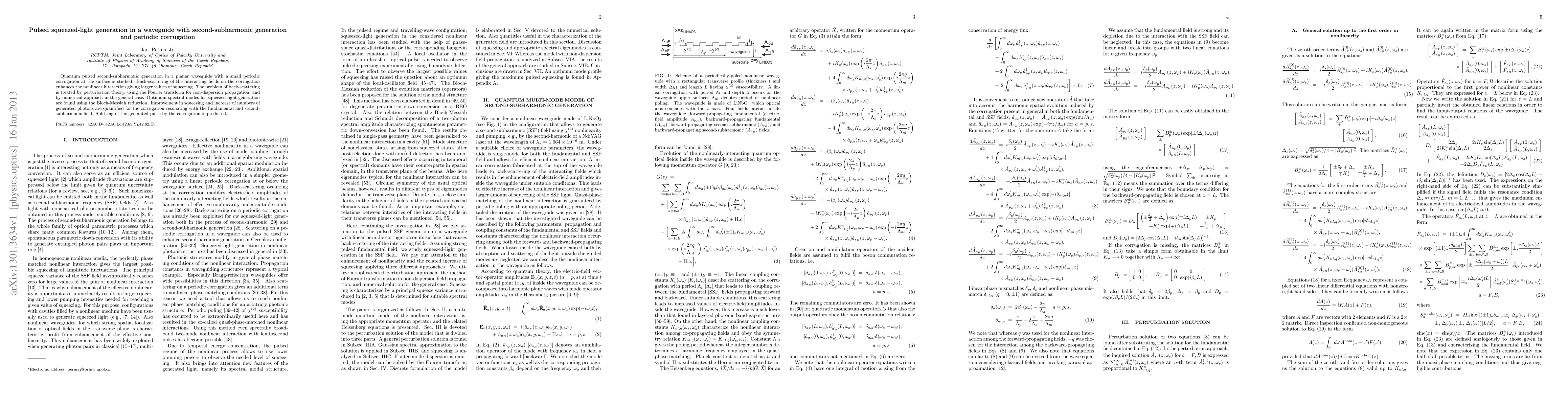 Quantum pulsed second-subharmonic generation in a planar waveguide with a small periodic corrugation at the surface is studied. Back-scattering of the interacting fields on the corrugation enhances the nonlinear interaction giving larger values of squeezing. The problem of back-scattering is treated by perturbation theory, using the Fourier transform for non-dispersion propagation, and by numerical approach in the general case. Optimum spectral modes for squeezed-light generation are found using the Bloch-Messiah reduction. Improvement in squeezing and increase of numbers of generated photons are quantified for the corrugation resonating with the fundamental and second-subharmonic field. Splitting of the generated pulse by the corrugation is predicted.