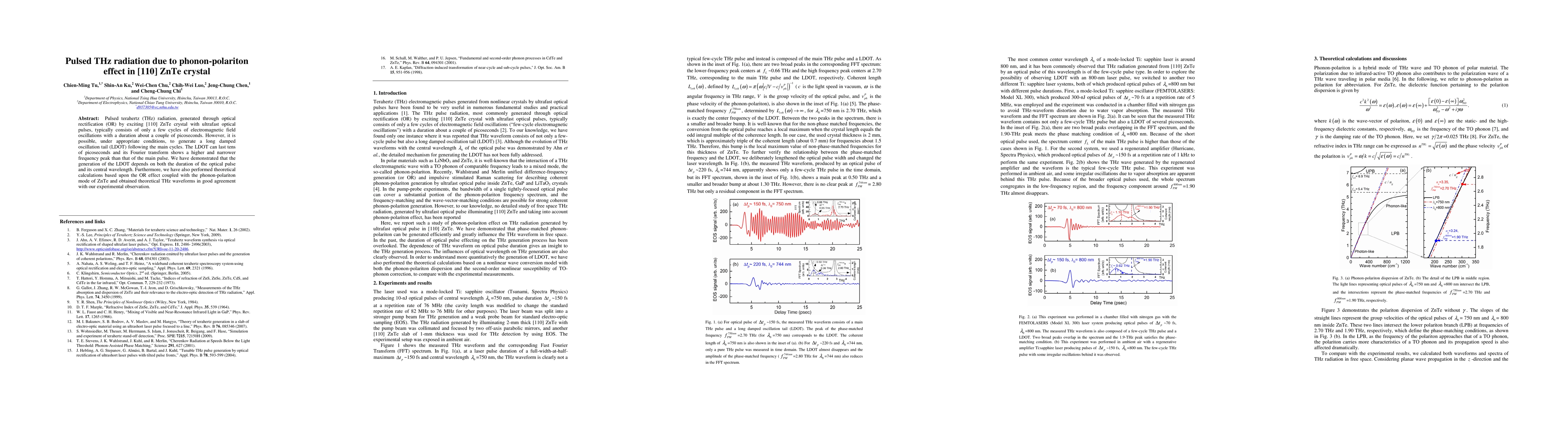 The research demonstrates generation of long-lasting terahertz radiation (LDOT) in ZnTe crystals using ultrafast optical pulses. The LDOT, lasting tens of picoseconds, is shown to depend on pulse duration and wavelength, with theoretical calculations aligning with experimental results.