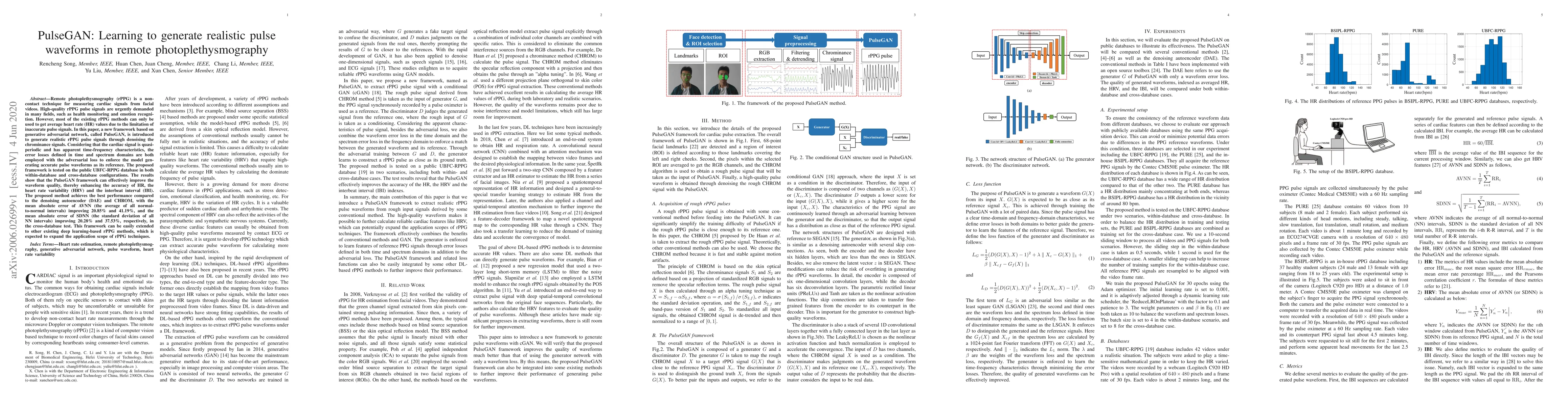 This paper introduces PulseGAN, a generative adversarial network framework to produce realistic rPPG pulse signals from facial video chrominance signals, enhancing heart rate accuracy and variability metrics. It outperforms existing methods in cross-database tests, suggesting broad applications for rPPG techniques.