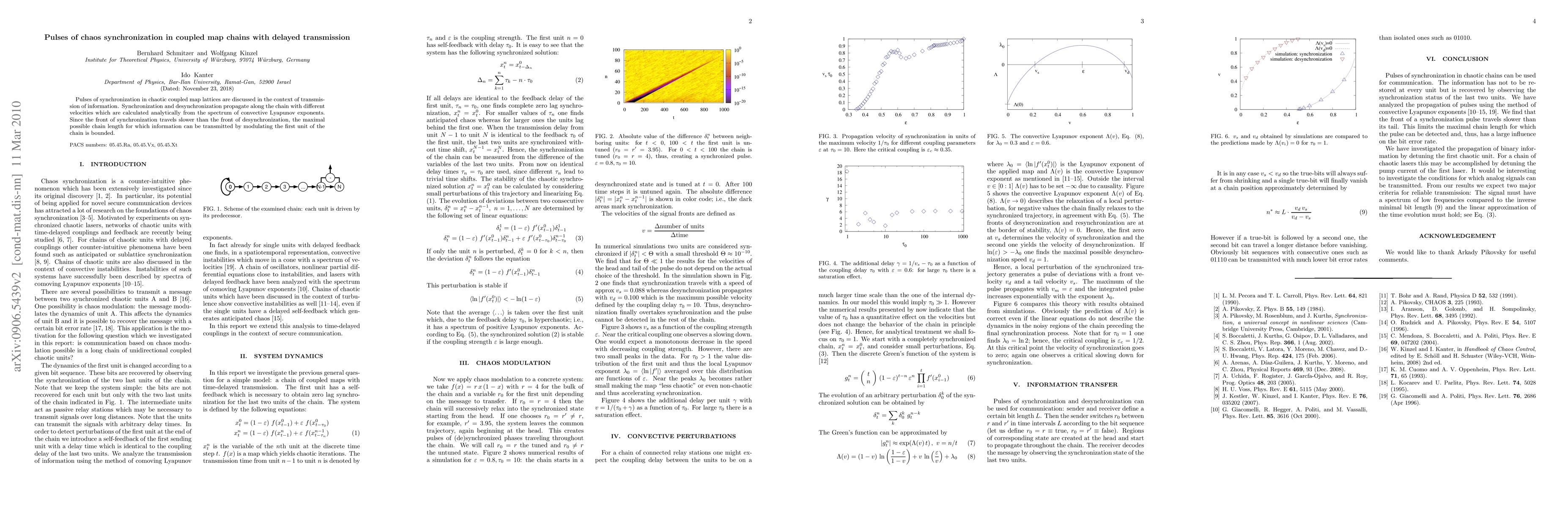 Pulses of synchronization in chaotic coupled map lattices are discussed in the context of transmission of information. Synchronization and desynchronization propagate along the chain with different velocities which are calculated analytically from the spectrum of convective Lyapunov exponents. Since the front of synchronization travels slower than the front of desynchronization, the maximal possible chain length for which information can be transmitted by modulating the first unit of the chain is bounded.