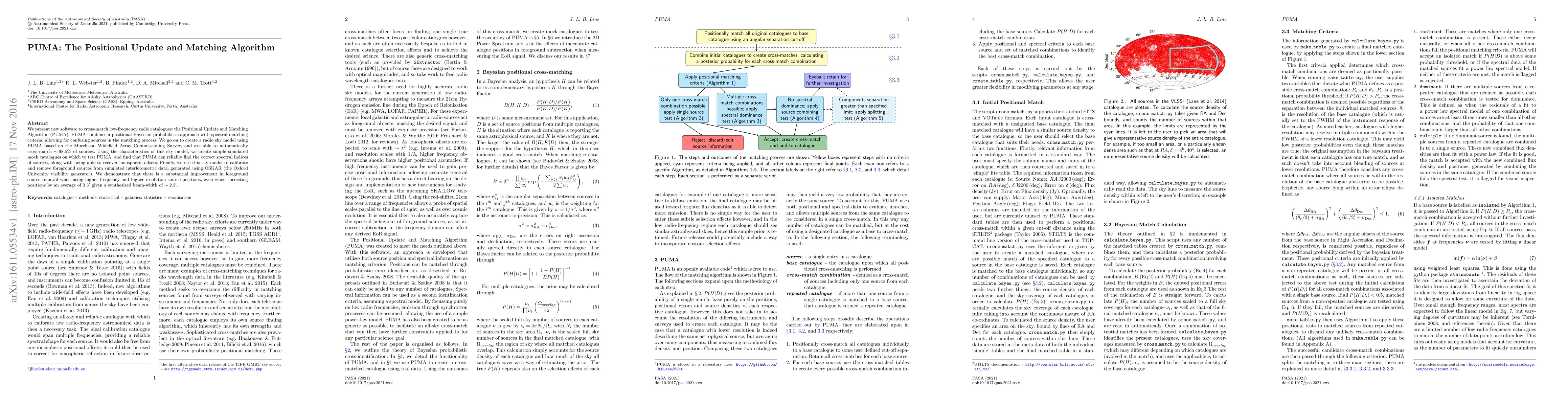 We present new software to cross-match low-frequency radio catalogues: the Positional Update and Matching Algorithm (PUMA). PUMA combines a positional Bayesian probabilistic approach with spectral matching criteria, allowing for confusing sources in the matching process. We go on to create a radio sky model using PUMA based on the Murchison Widefield Array Commissioning Survey, and are able to automatically cross-match 98.5% of sources. Using the characteristics of this sky model, we create simple simulated mock catalogues on which to test PUMA, and find that PUMA can reliably find the correct spectral indices of sources, along with being able to recover ionospheric offsets. Finally, we use this sky model to calibrate and remove foreground sources from simulated interferometric data, generated using OSKAR (the Oxford University visibility generator). We demonstrate that there is a substantial improvement in foreground source removal when using higher frequency and higher resolution source positions, even when correcting positions by an average of 0.3 given a synthesized beam-width of 2.3.