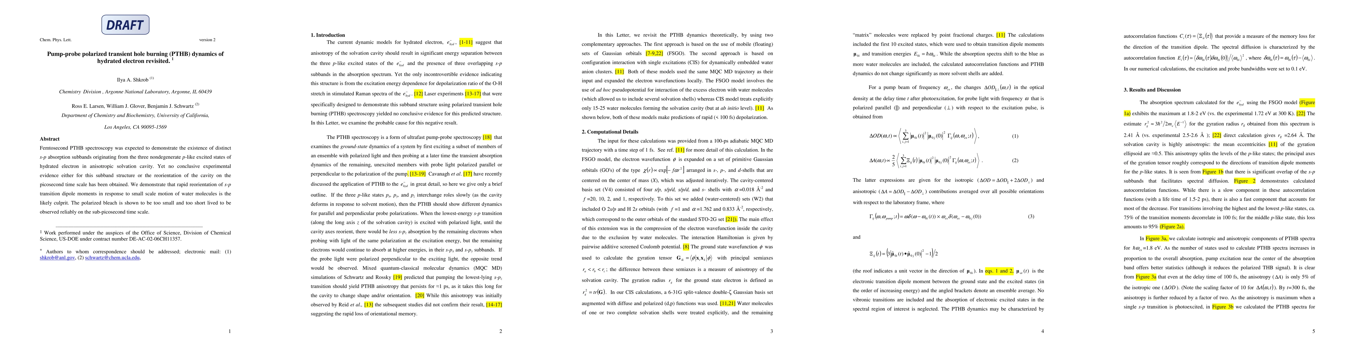 Femtosecond PTHB spectroscopy was expected to demonstrate the existence of distinct s-p absorption subbands originating from the three nondegenerate p-like excited states of hydrated electron in anisotropic solvation cavity. Yet no conclusive experimental evidence either for this subband structure or the reorientation of the cavity on the picosecond time scale has been obtained. We demonstrate that rapid reorientation of s-p transition dipole moments in response to small scale motion of water molecules is the likely culprit. The polarized bleach is shown to be too small and too short lived to be observed reliably on the sub-picosecond time scale.