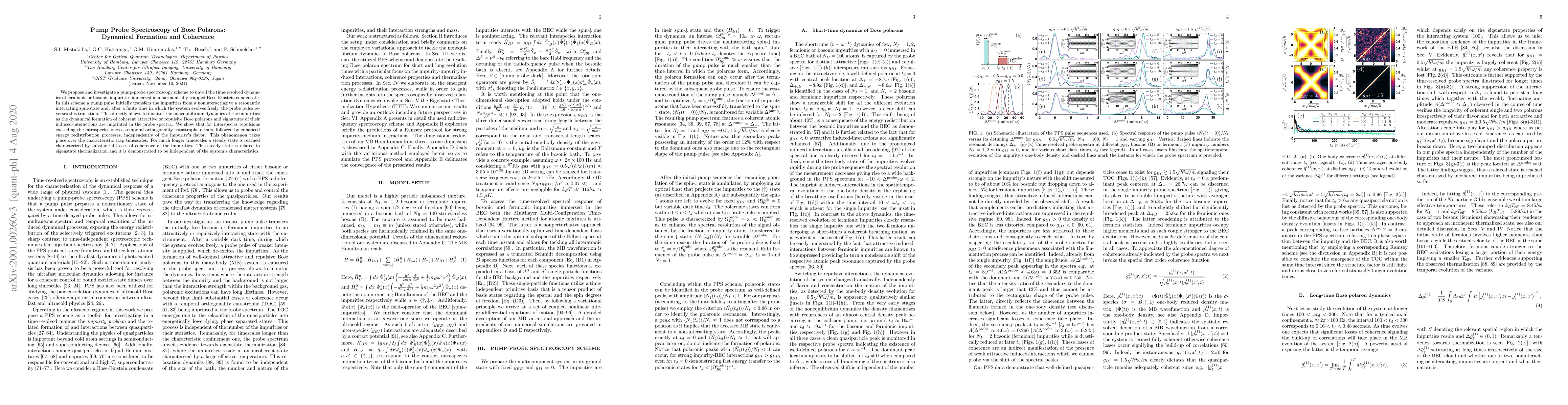 This paper proposes a pump-probe spectroscopy technique to study the time-resolved dynamics of impurities in a Bose-Einstein condensate, revealing the formation of Bose polarons and their coherence. It finds that strong interspecies repulsion leads to a temporal orthogonality catastrophe and enhanced energy redistribution, while long-term dynamics result in coherence loss and eigenstate thermalization.
