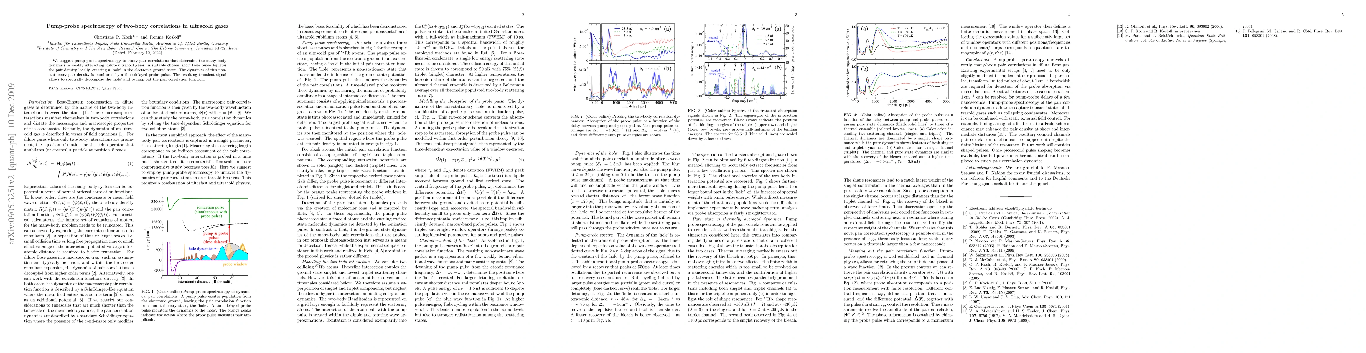 This paper proposes using pump-probe spectroscopy to investigate pair correlations in ultracold gases, where a short laser pulse creates a local 'hole' in the pair density, and a delayed probe pulse monitors its dynamics to reveal the underlying pair correlation functions.