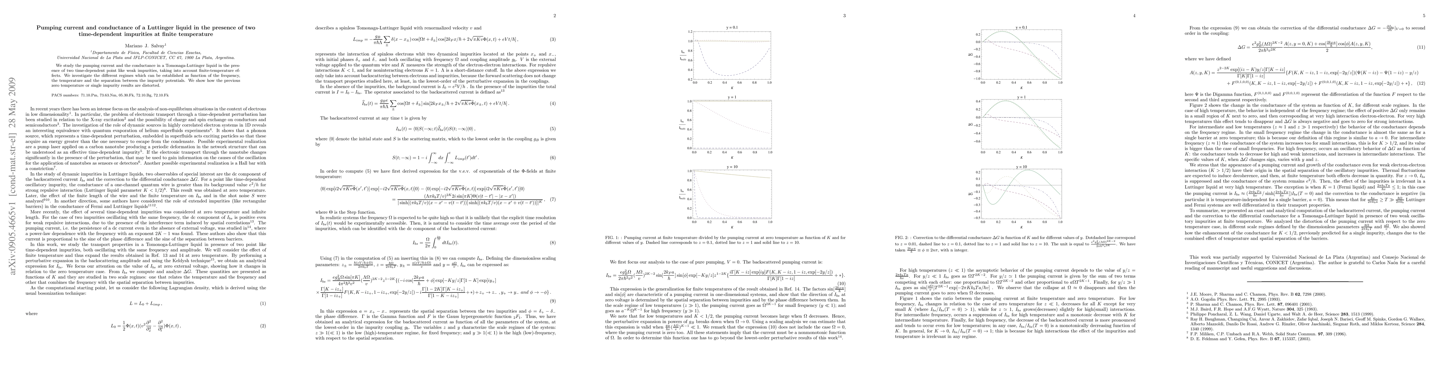 This paper investigates the pumping current and conductance in a Luttinger liquid with two time-dependent impurities at finite temperature, examining how these effects differ from zero-temperature or single impurity scenarios, and explores various regimes based on frequency, temperature, and impurity separation.