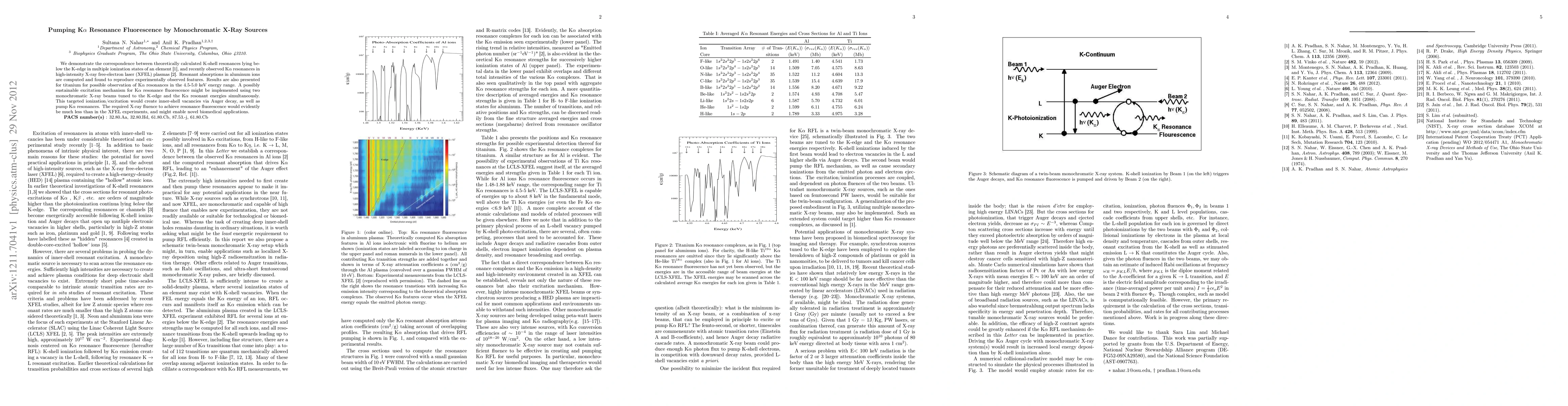 We demonstrate the correspondence between theoretically calculated K-shell resonances lying below the K-edge in multiple ionization states of an element (Pradhan et al. 2009), and recently observed K-alpha resonances in high-intensity X-ray free-electron laser (XFEL) plasmas (Vinko et al. 2012). Resonant absorptions in aluminum ions are computed and found to reproduce experimentally observed features. Results are also presented for titanium for possible observation of K-alpha resonances in the 4.5-5.0 keV energy range. A possibly sustainable excitation mechanism for K-alpha resonance fluorescence might be implemented using two monochromatic X-ray beams tuned to the K-edge and the K-alpha resonant energies simultaneously. This targeted ionization/excitation would create inner-shell vacancies via Auger decay, as well as pump K-alpha resonances. The required X-ray fluence to achieve resonance fluorescence would evidently be much less than in the XFEL experiments, and might enable novel biomedical applications.