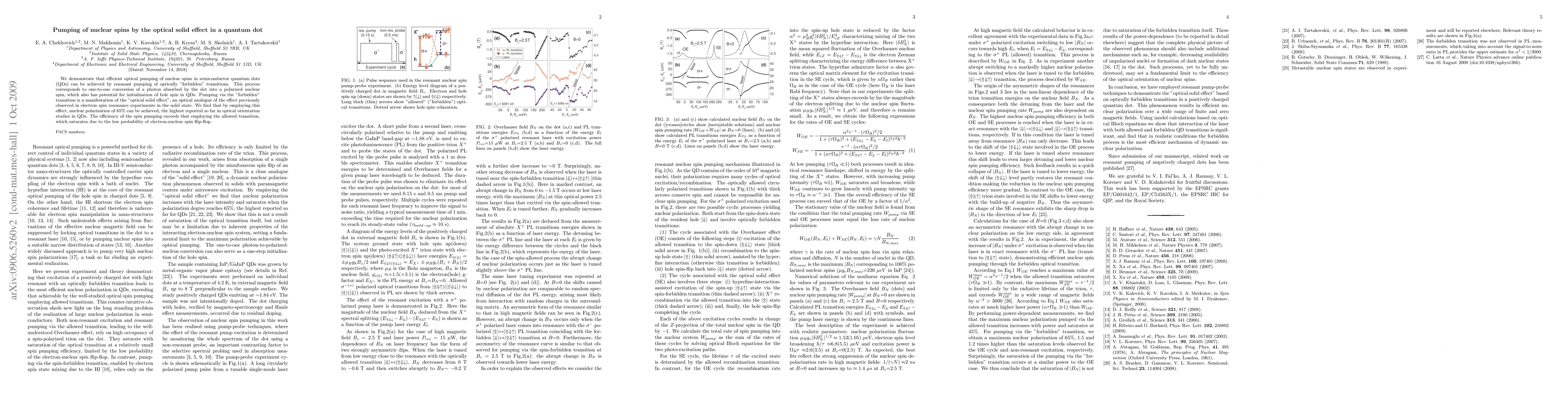 This paper demonstrates efficient optical pumping of nuclear spins in semiconductor quantum dots via resonant pumping of "forbidden" transitions, achieving a nuclear polarization of 65%, the highest reported to date. This process, termed the "optical solid effect," converts absorbed photons into polarized nuclear spins, surpassing the efficiency of allowed transition methods.