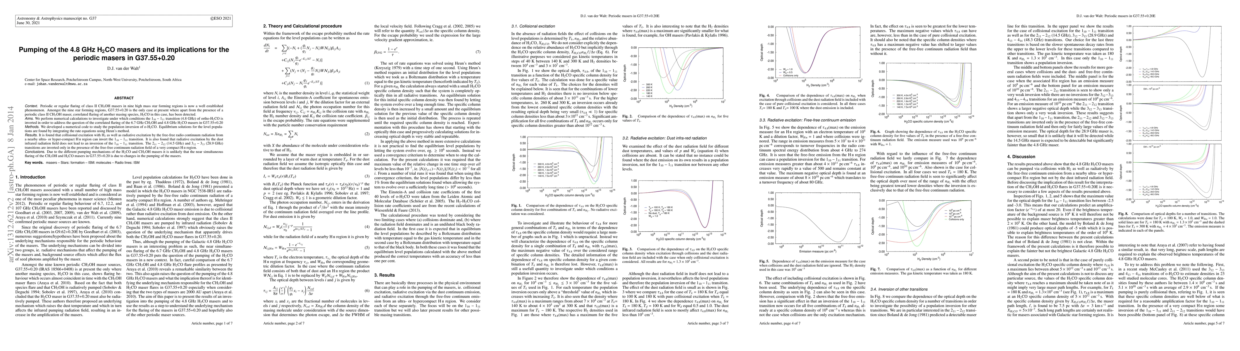 Periodic or regular flaring of class II methanol masers in nine high mass star forming regions is now a well established phenomenon. Amongst the nine star forming regions, G37.55+0.20 is the only case at present where apart from the presence of a periodic class II methanol maser, correlated flaring of another masing species, formaldehyde in this case, has been detected. We perform numerical calculations to investigate under which conditions the 4.8 GHz transition of ortho-formaldehyde is inverted in order to address the question of the correlated flaring of the 6.7 GHz methanol and 4.8 GHz formaldehyde masers in G37.55+0.20. We developed a numerical code to study the population inversion of o-formaldehyde. Equilibrium solutions for the level populations are found by integrating the rate equations using Heun's method. It is found that collisional excitation with H$_2$ as well as radiative excitation by the free-free radio continuum radiation from a nearby ultra- or hyper-compact HII region can invert the 4.8 GHz transition. It is also found that radiative excitation by the dust infrared radiation field does not lead to an inversion of the 4.8 GHz transition. The 14.5 GHz and 28.9 GHz transitions are inverted only in the presence of the free-free continuum radiation field of a very compact HII region. Due to the different pumping mechanisms of the formaldehyde and methanol masers it is unlikely that the near simultaneous flaring of the methanol and formaldehyde masers in G37.55+0.20 is due to changes in the pumping of the masers.