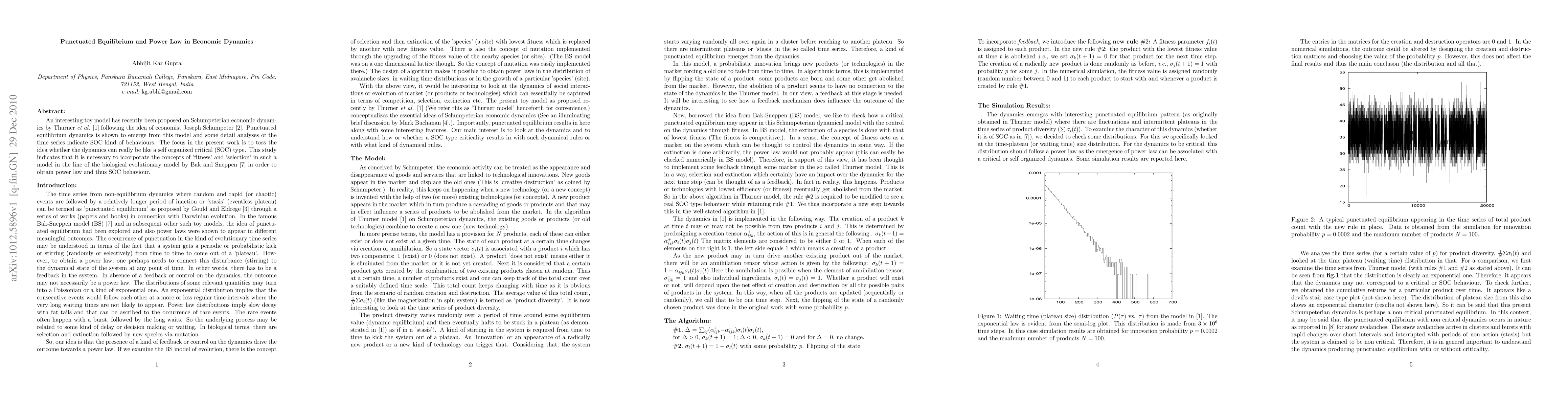 An interesting toy model has recently been proposed on Schumpeterian economic dynamics by Thurner {\it et al.} following the idea of economist Joseph Schumpeter. Punctuated equilibrium dynamics is shown to emerge from this model and some detail analyses of the time series indicate SOC kind of behaviours. The focus in the present work is to toss the idea whether the dynamics can really be like a self organized critical (SOC) type. This study indicates that it is necessary to incorporate the concepts of 'fitness' and 'selection' in such a model in the line of the biological evolutionary model by Bak and Sneppen in order to obtain power law and thus SOC behaviour.