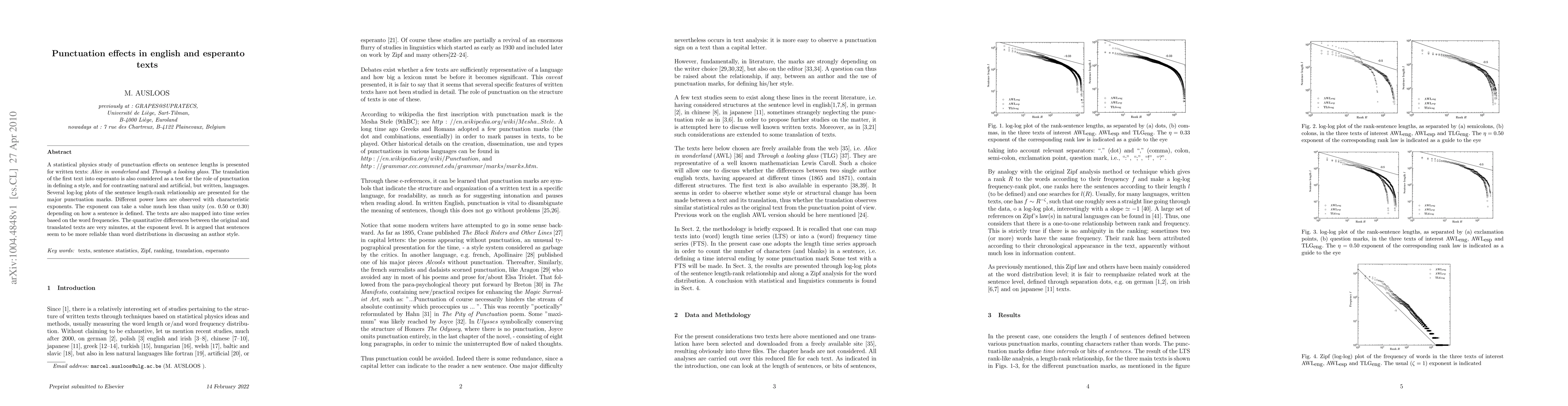 The study uses statistical physics methods to analyze punctuation effects on sentence lengths in English texts 'Alice in Wonderland' and 'Through the Looking Glass', and their Esperanto translations, examining log-log plots for various punctuation marks and mapping texts into time series based on word frequencies.