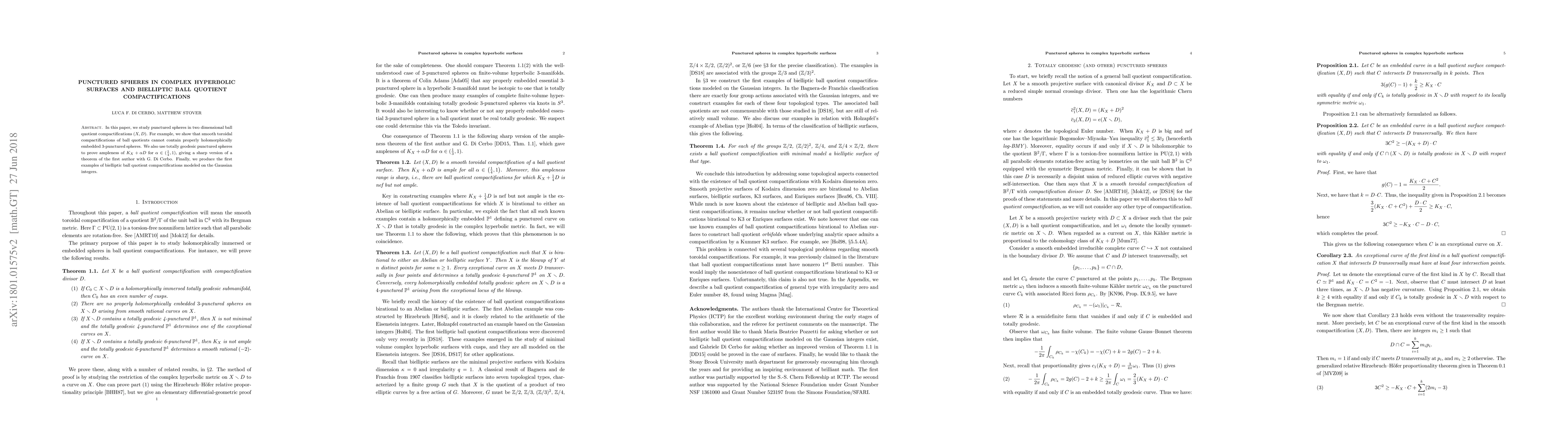 This paper investigates punctured spheres in two-dimensional ball quotient compactifications, proving that smooth toroidal compactifications cannot contain properly holomorphically embedded 3-punctured spheres. It also uses geodesic punctured spheres to demonstrate the ampleness of $K_X + \alpha D$ for $\alpha \in (\frac{1}{4}, 1)$ and presents the first examples of bielliptic ball quotient compactifications based on Gaussian integers.