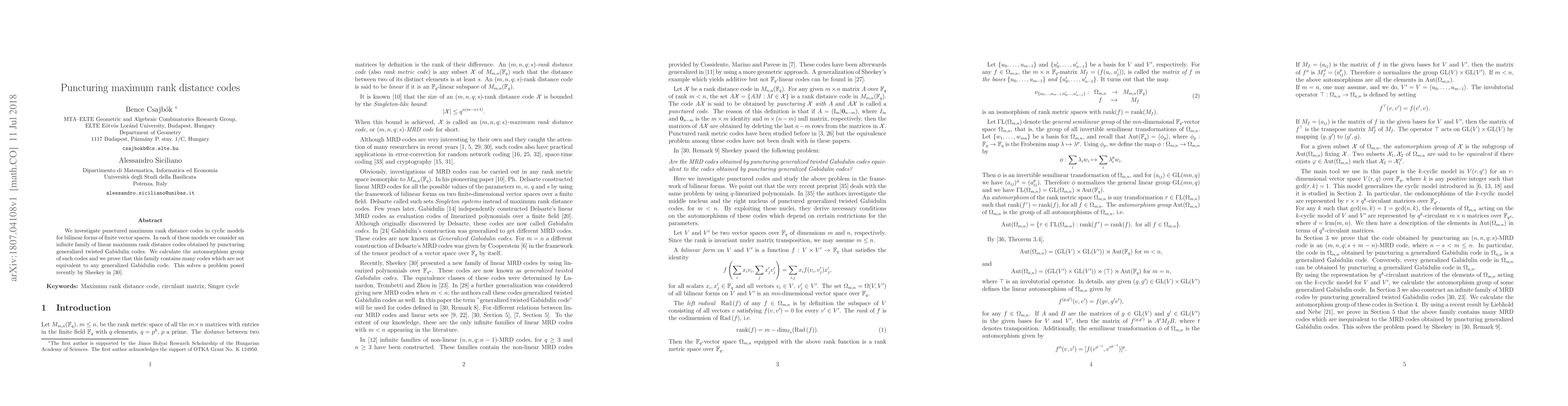 The paper presents detailed proofs and calculations regarding the automorphism groups of punctured maximum rank distance codes, extending previous work on Gabidulin codes.