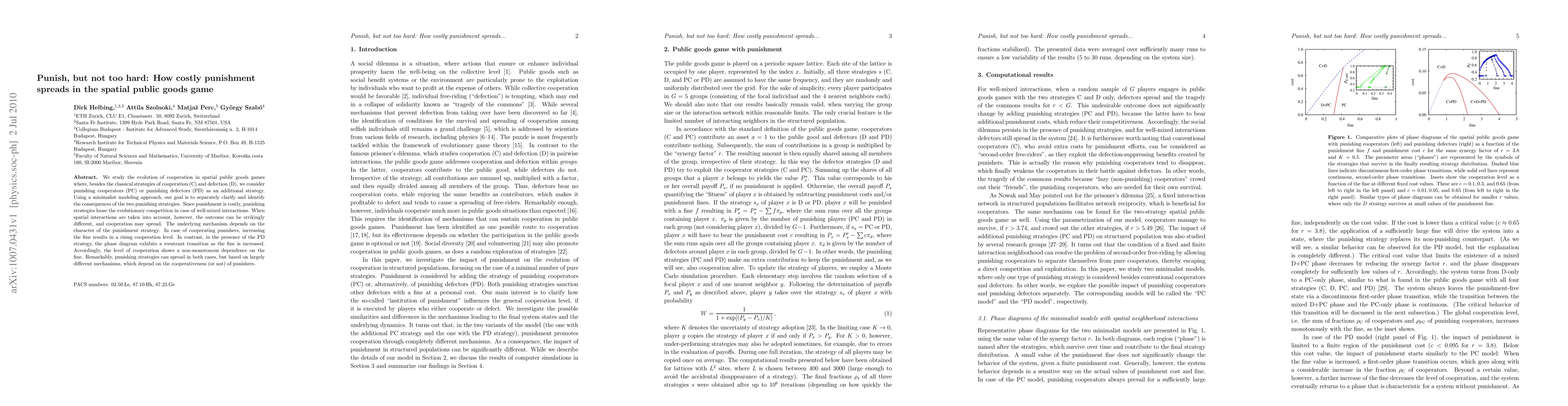 This paper investigates the evolution of cooperation in spatial public goods games, focusing on the impact of costly punishment strategies. It finds that while punishment generally fails in well-mixed interactions, spatial interactions can lead to the spread of cooperation, with the effectiveness of punishment depending on whether punishers target cooperators or defectors.