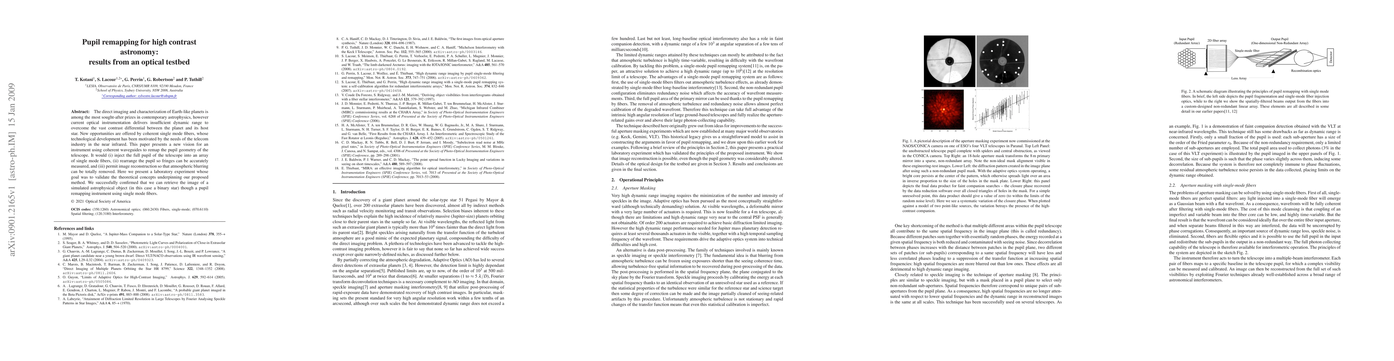 The direct imaging and characterization of Earth-like planets is among the most sought-after prizes in contemporary astrophysics, however current optical instrumentation delivers insufficient dynamic range to overcome the vast contrast differential between the planet and its host star. New opportunities are offered by coherent single mode fibers, whose technological development has been motivated by the needs of the telecom industry in the near infrared. This paper presents a new vision for an instrument using coherent waveguides to remap the pupil geometry of the telescope. It would (i) inject the full pupil of the telescope into an array of single mode fibers, (ii) rearrange the pupil so fringes can be accurately measured, and (iii) permit image reconstruction so that atmospheric blurring can be totally removed. Here we present a laboratory experiment whose goal was to validate the theoretical concepts underpinning our proposed method. We successfully confirmed that we can retrieve the image of a simulated astrophysical object (in this case a binary star) though a pupil remapping instrument using single mode fibers.