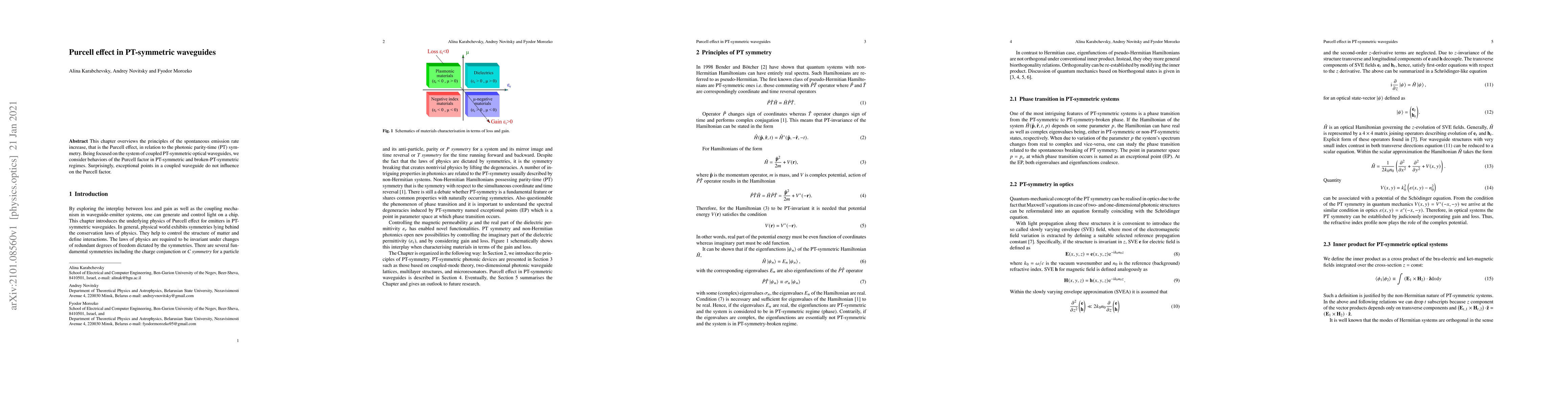 This chapter overviews the principles of the spontaneous emission rate increase, that is the Purcell effect, in relation to the photonic parity-time (PT) symmetry. Being focused on the system of coupled PT-symmetric optical waveguides, we consider behaviors of the Purcell factor in PT-symmetric and broken-PT-symmetric regimes. Surprisingly, exceptional points in a coupled waveguide do not influence on the Purcell factor.