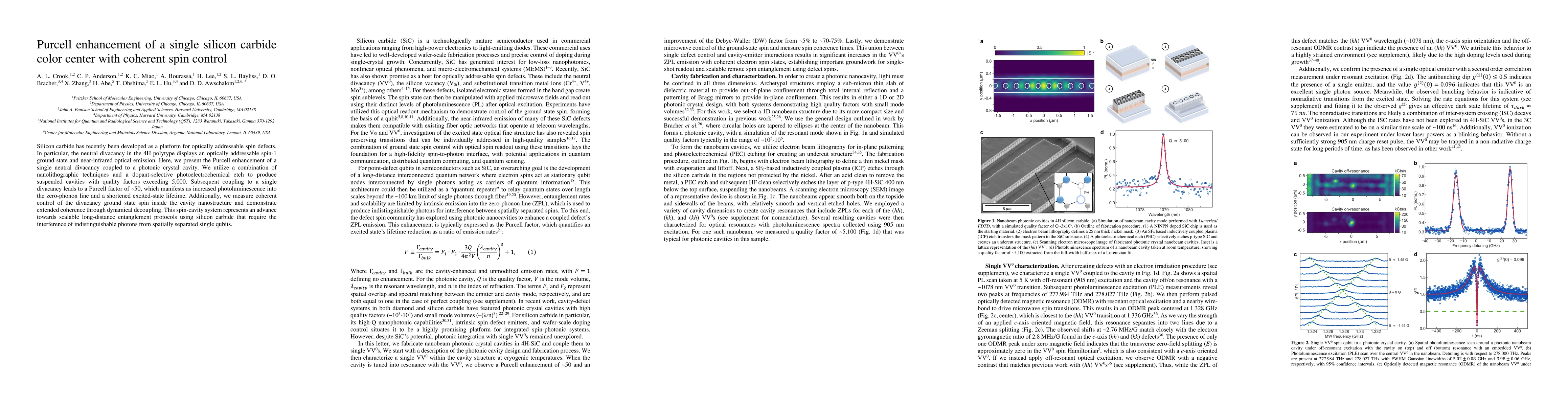 This paper demonstrates the Purcell enhancement of a single silicon carbide divacancy coupled to a photonic crystal cavity, achieving a Purcell factor of ~50 and coherent spin control, which advances scalable entanglement protocols using silicon carbide.