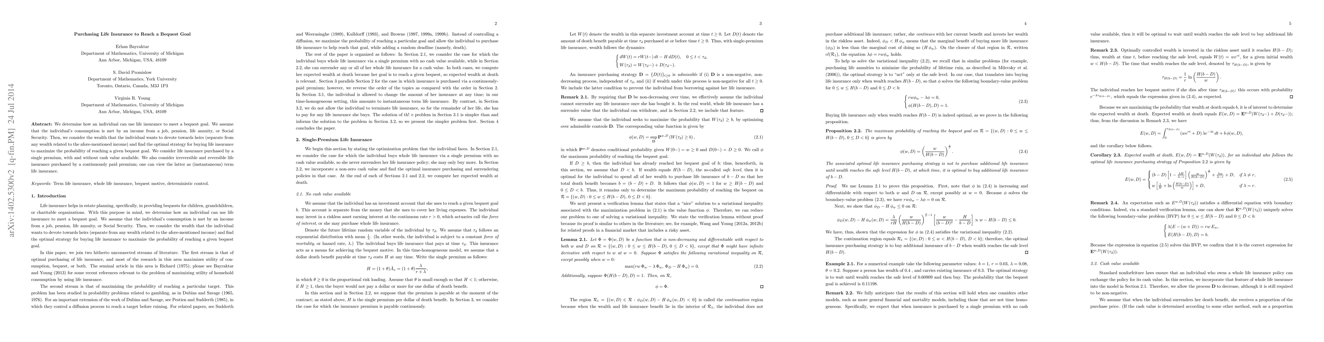 This paper explores optimal strategies for using life insurance to achieve a specified bequest goal, considering various types of life insurance and payment methods. It examines how to maximize the likelihood of meeting the bequest target while accounting for income sources and the availability of cash value.