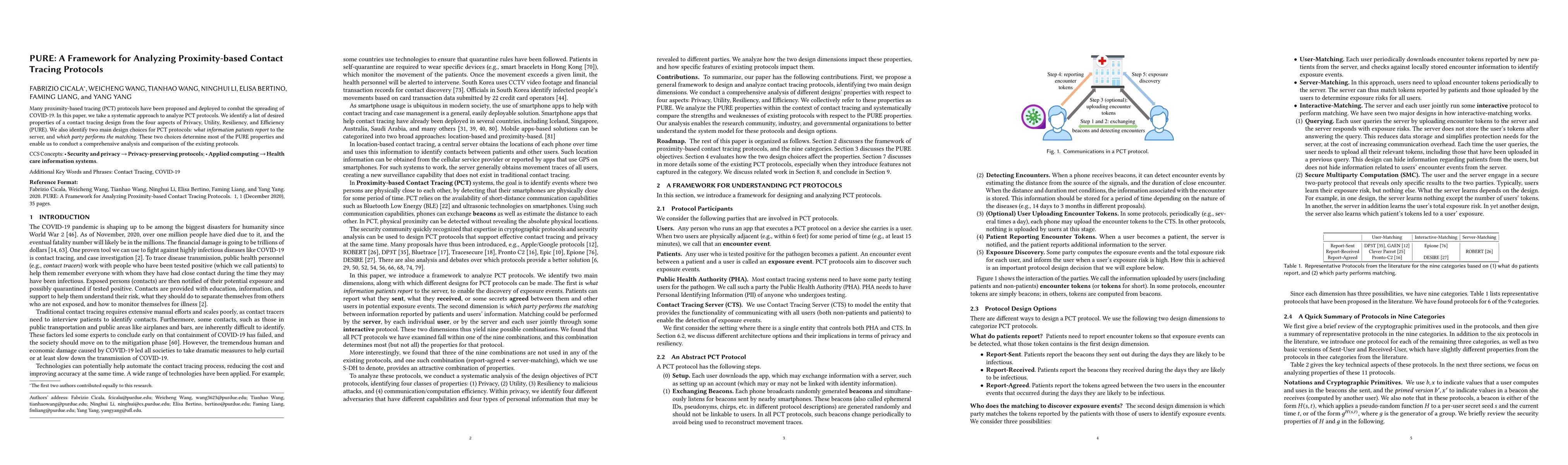 Many proximity-based tracing (PCT) protocols have been proposed and deployed to combat the spreading of COVID-19. In this paper, we take a systematic approach to analyze PCT protocols. We identify a list of desired properties of a contact tracing design from the four aspects of Privacy, Utility, Resiliency, and Efficiency (PURE). We also identify two main design choices for PCT protocols: what information patients report to the server, and which party performs the matching. These two choices determine most of the PURE properties and enable us to conduct a comprehensive analysis and comparison of the existing protocols.