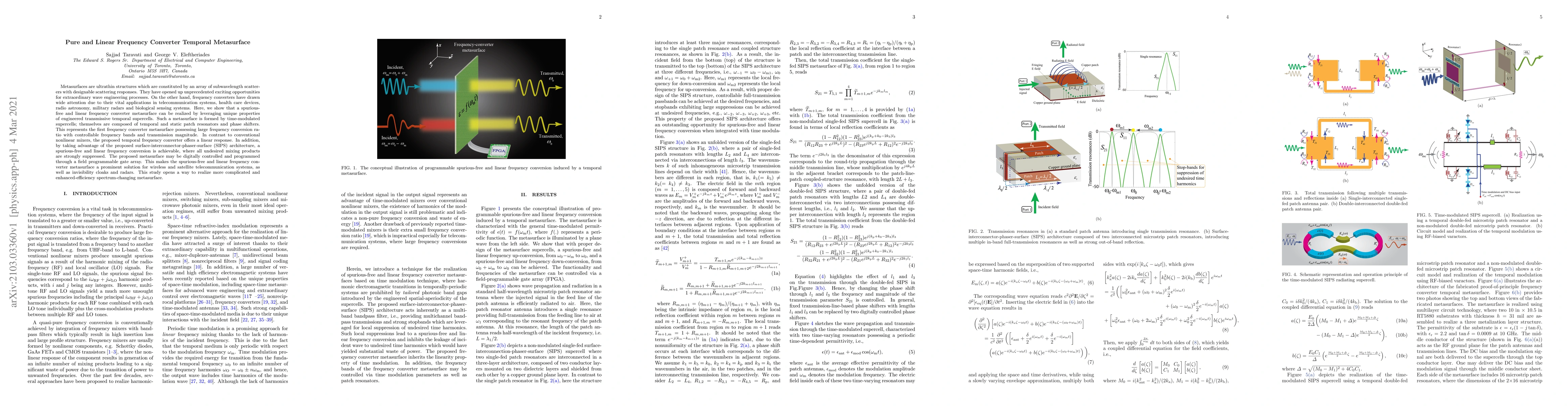 This paper presents a novel linear frequency converter metasurface using engineered temporal supercells, achieving large frequency conversion ratios with controllable bands and transmission magnitude, while suppressing spurious signals. The proposed metasurface, based on a SIPS architecture, offers a digitally controlled, spurious-free solution for applications in telecommunications and radar systems.