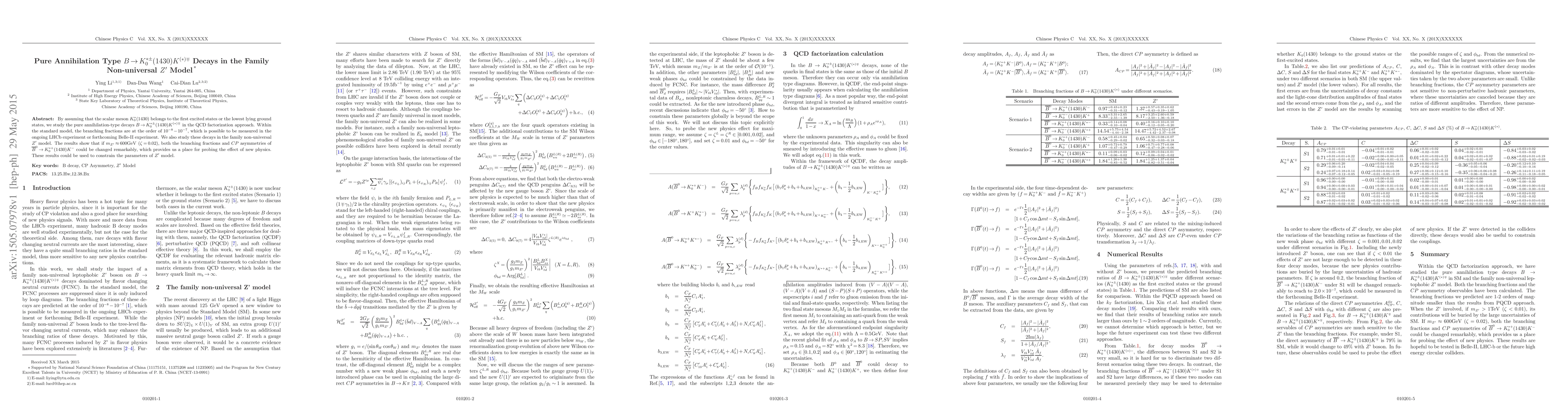 This paper investigates the pure annihilation-type decays $B \to K_0^{*\pm}(1430)K^{(*)\mp}$ within the QCD factorization approach, finding branching fractions measurable in current experiments. It also explores these decays in the context of a family non-universal $Z^\prime$ model, revealing significant changes in branching fractions and CP asymmetries at $m_{Z^\prime}\approx 600\mathrm{GeV}$, providing a probe for new physics.