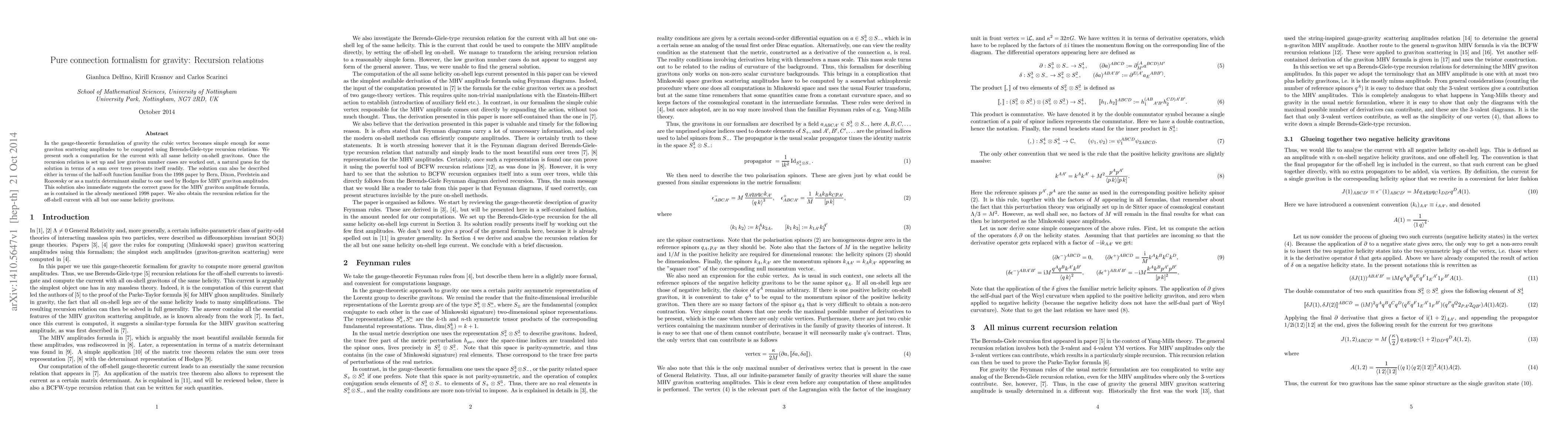 In the gauge-theoretic formulation of gravity the cubic vertex becomes simple enough for some graviton scattering amplitudes to be computed using Berends-Giele-type recursion relations. We present such a computation for the current with all same helicity on-shell gravitons. Once the recursion relation is set up and low graviton number cases are worked out, a natural guess for the solution in terms of a sum over trees presents itself readily. The solution can also be described either in terms of the half-soft function familiar from the 1998 paper by Bern, Dixon, Perelstein and Rozowsky or as a matrix determinant similar to one used by Hodges for MHV graviton amplitudes. This solution also immediate suggests the correct guess for the MHV graviton amplitude formula, as is contained in the already mentioned 1998 paper. We also obtain the recursion relation for the off-shell current with all but one same helicity gravitons.