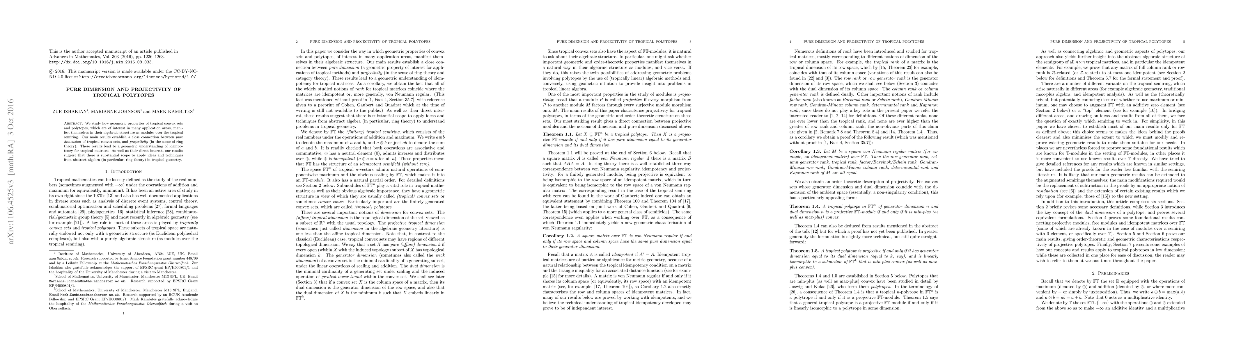 This paper investigates the relationship between the pure dimension of tropical convex sets and projectivity in tropical geometry, revealing a connection that enhances the understanding of idempotency in tropical matrices and suggests potential applications of abstract algebra techniques in tropical geometry.
