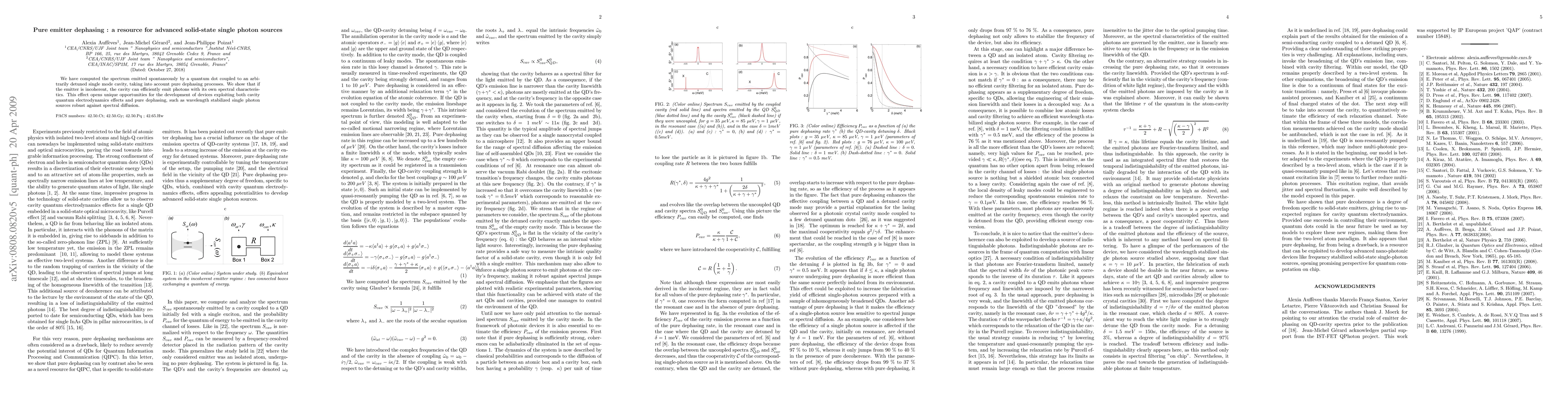We have computed the spectrum emitted spontaneously by a quantum dot coupled to an arbitrarily detuned single mode cavity, taking into account pure dephasing processes. We show that if the emitter is incoherent, the cavity can efficiently emit photons with its own spectral characteristics. This effect opens unique opportunities for the development of devices exploiting both cavity quantum electrodynamics effects and pure dephasing, such as wavelength stabilized single photon sources robust against spectral diffusion.