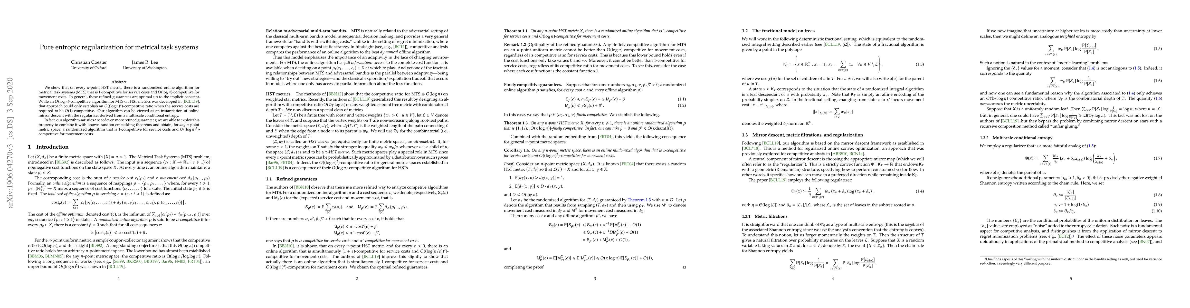 We show that on every $n$-point HST metric, there is a randomized online algorithm for metrical task systems (MTS) that is $1$-competitive for service costs and $O(\log n)$-competitive for movement costs. In general, these refined guarantees are optimal up to the implicit constant. While an $O(\log n)$-competitive algorithm for MTS on HST metrics was developed by Bubeck et al. (SODA 2019), that approach could only establish an $O((\log n)^2)$-competitive ratio when the service costs are required to be $O(1)$-competitive. Our algorithm can be viewed as an instantiation of online mirror descent with the regularizer derived from a multiscale conditional entropy. In fact, our algorithm satisfies a set of even more refined guarantees; we are able to exploit this property to combine it with known random embedding theorems and obtain, for any $n$-point metric space, a randomized algorithm that is $1$-competitive for service costs and $O((\log n)^2)$-competitive for movement costs.