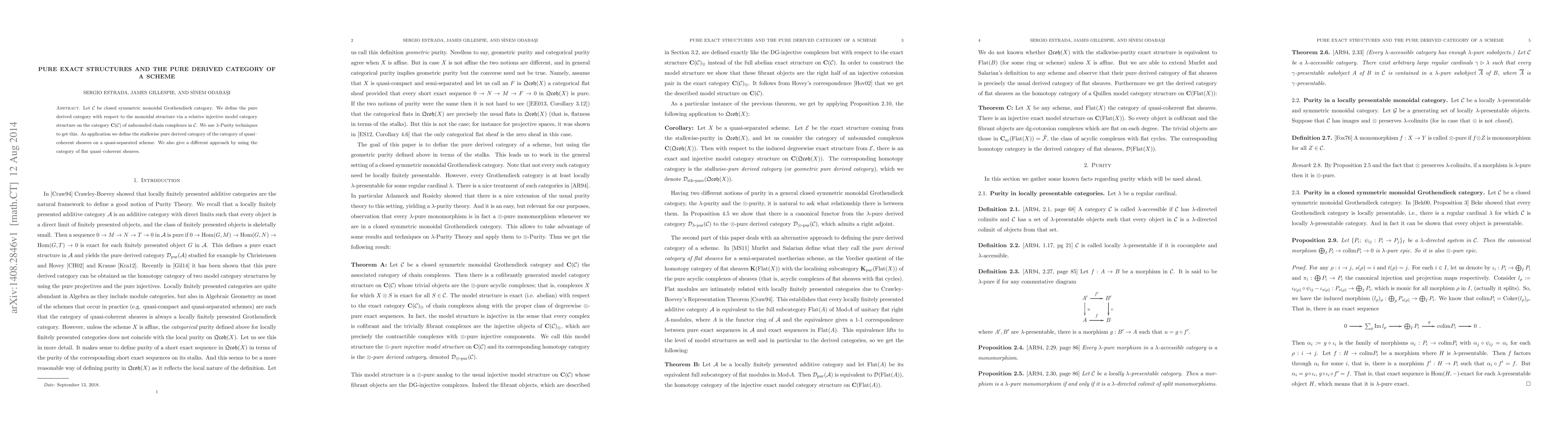 This paper defines the pure derived category for a closed symmetric monoidal Grothendieck category using a relative injective model category structure and $\lambda$-Purity techniques. It applies these concepts to define the stalkwise pure derived category for quasi-coherent sheaves on quasi-separated schemes, also exploring an alternative approach via flat quasi-coherent sheaves.