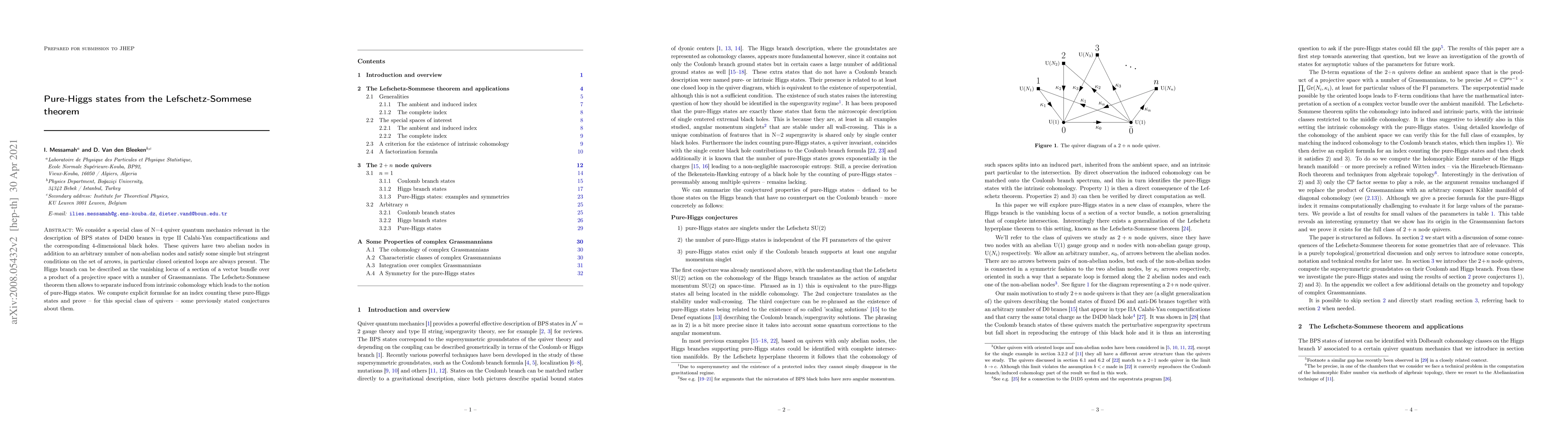 We consider a special class of N=4 quiver quantum mechanics relevant in the description of BPS states of D4D0 branes in type II Calabi-Yau compactifications and the corresponding 4-dimensional black holes. These quivers have two abelian nodes in addition to an arbitrary number of non-abelian nodes and satisfy some simple but stringent conditions on the set of arrows, in particular closed oriented loops are always present. The Higgs branch can be described as the vanishing locus of a section of a vector bundle over a product of a projective space with a number of Grassmannians. The Lefschetz-Sommese theorem then allows to separate induced from singular cohomology which leads to the notion of pure-Higgs states. We compute explicit formulae for an index counting these pure-Higgs states and prove -- for this special class of quivers -- some previously stated conjectures about them.