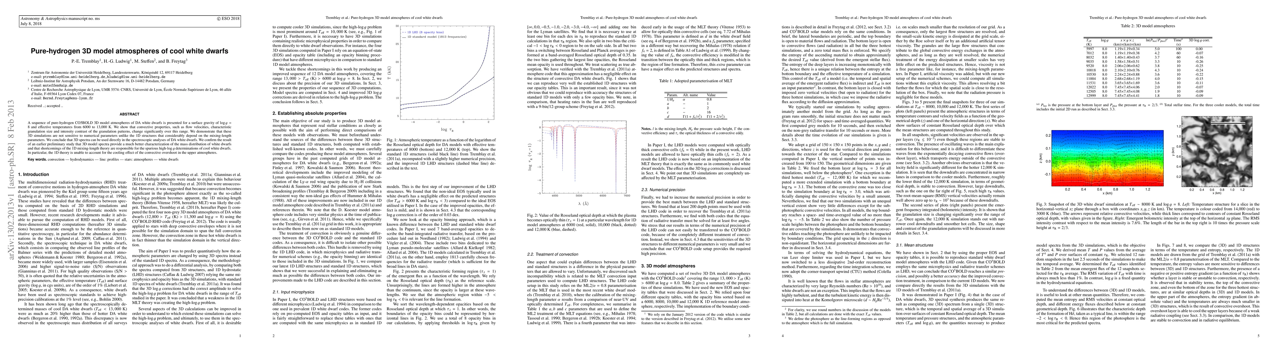 This paper presents 3D model atmospheres for pure-hydrogen DA white dwarfs, showing significant changes in convective properties over effective temperatures from 6,000 to 13,000 K. The 3D simulations are robust against numerical parameters, unlike 1D models, and suggest that 3D spectra are more accurate for spectroscopic analysis and better characterize mass distribution.