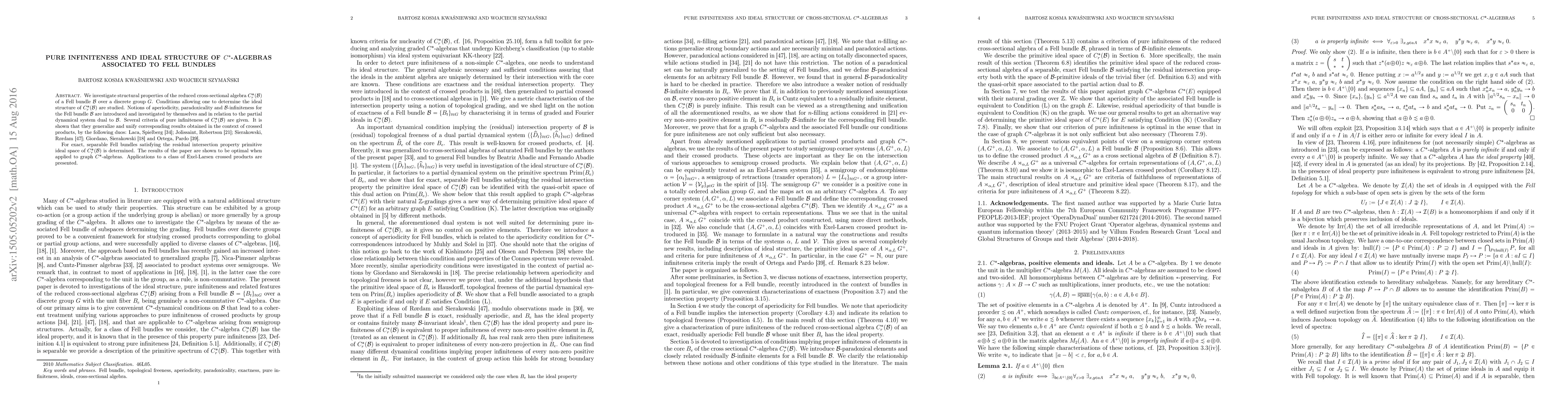 We investigate structural properties of the reduced cross-sectional algebra $C^*_r(\mathcal{B})$ of a Fell bundle $\mathcal{B}$ over a discrete group $G$. Conditions allowing one to determine the ideal structure of $C^*_r(\mathcal{B})$ are studied. Notions of aperiodicity, paradoxicality and $\mathcal{B}$-infiniteness for the Fell bundle $\mathcal{B}$ are introduced and investigated by themselves and in relation to the partial dynamical system dual to $\mathcal{B}$. Several criteria of pure infiniteness of $C^*_r(\mathcal{B})$ are given. It is shown that they generalize and unify corresponding results obtained in the context of crossed products, by the following duos: Laca, Spielberg; Jolissaint, Robertson; Sierakowski, R{\o}rdam; Giordano, Sierakowski and Ortega, Pardo. For exact, separable Fell bundles satisfying the residual intersection property primitive ideal space of $C^*_r(\mathcal{B})$ is determined. The results of the paper are shown to be optimal when applied to graph $C^*$-algebras. Applications to a class of Exel-Larsen crossed products are presented.