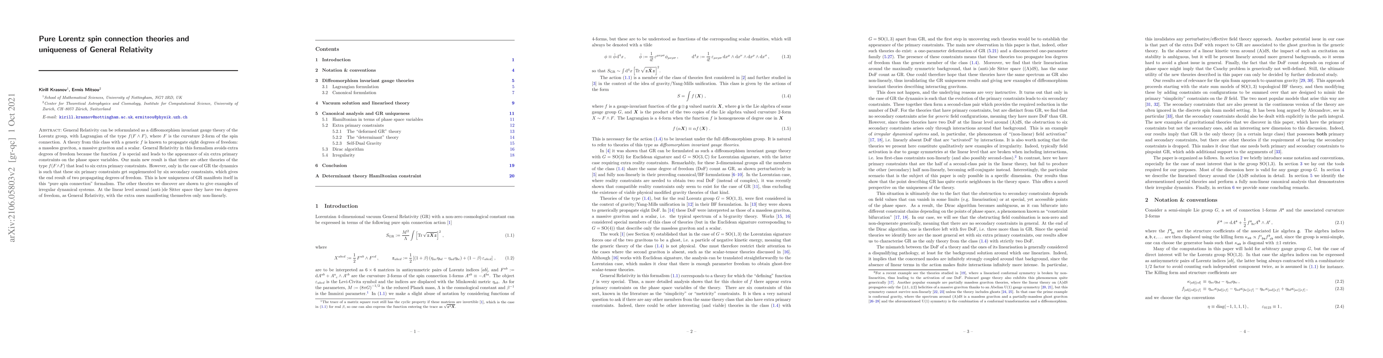 This paper reformulates General Relativity as a gauge theory of the Lorentz group and explores alternative theories of the same type. It finds that only General Relativity uniquely manifests two propagating degrees of freedom due to the interplay of primary and secondary constraints, distinguishing it from other theories that exhibit irregular dynamics.