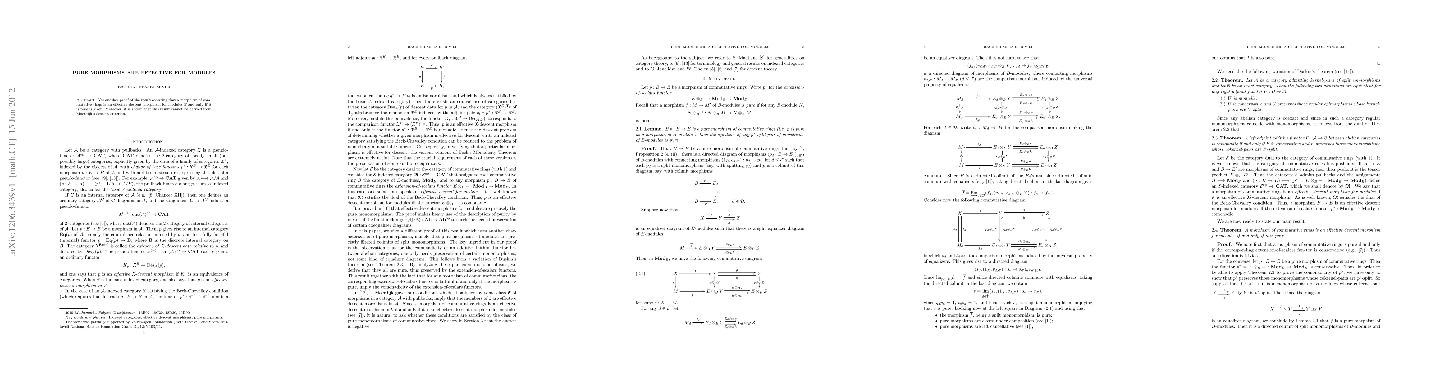 Yet another proof of the result asserting that a morphism of commutative rings is an effective descent morphism for modules if and only if it is pure is given. Moreover, it is shown that this result cannot be derived from Moerdijk's descent criterion.
