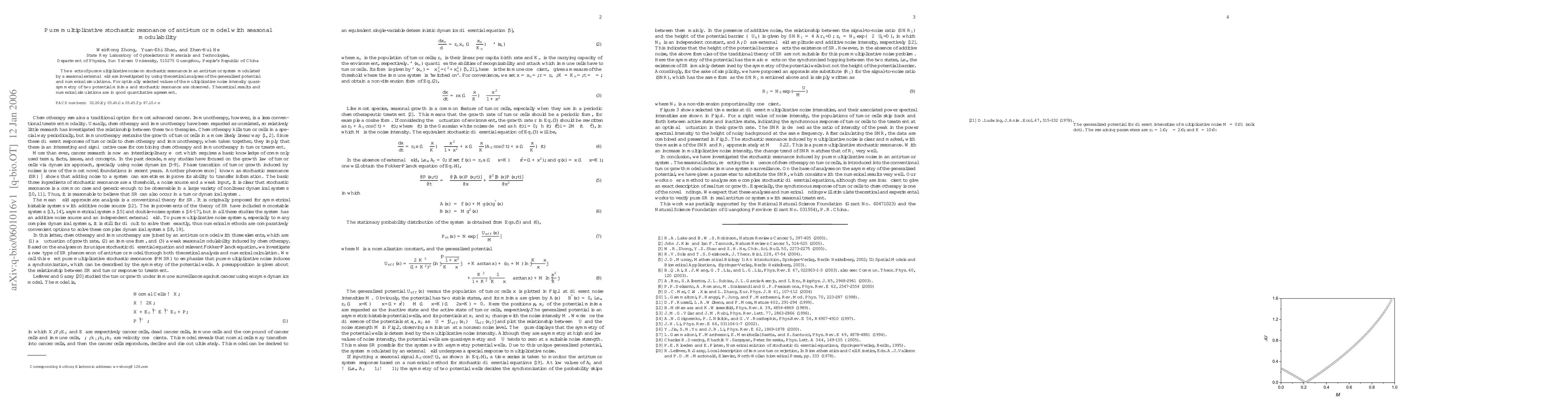 The effects of pure multiplicative noise on stochastic resonance in an anti-tumor system modulated by a seasonal external field are investigated by using theoretical analyses of the generalized potential and numerical simulations. For optimally selected values of the multiplicative noise intensity quasi-symmetry of two potential minima and stochastic resonance are observed. Theoretical results and numerical simulations are in good quantitative agreement.