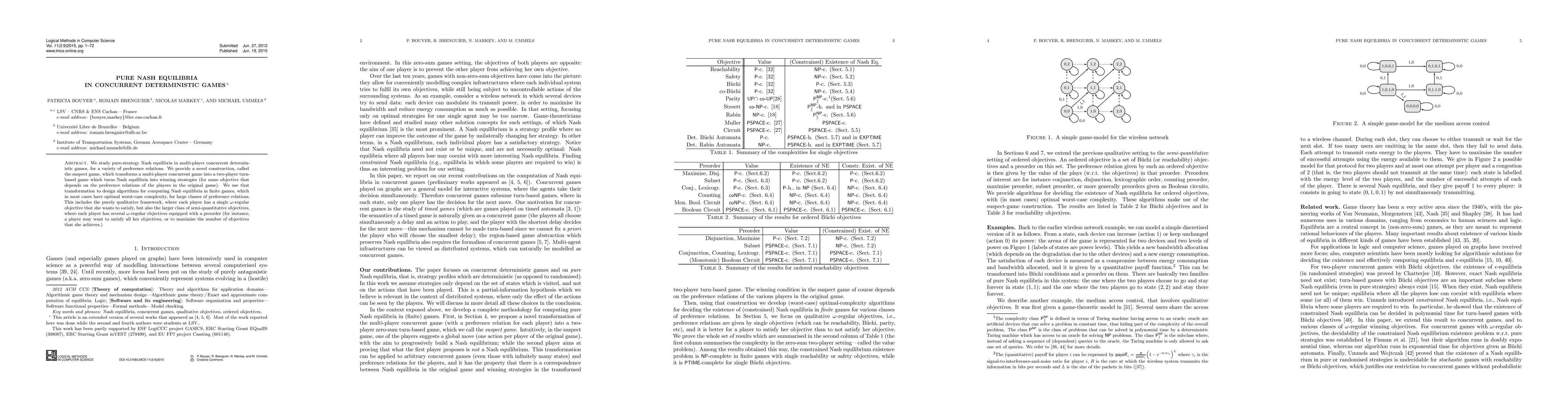 This paper investigates pure Nash equilibria in multi-player concurrent deterministic games using a novel suspect game transformation. It designs efficient algorithms for computing these equilibria, applicable to both qualitative and semi-quantitative preference frameworks.
