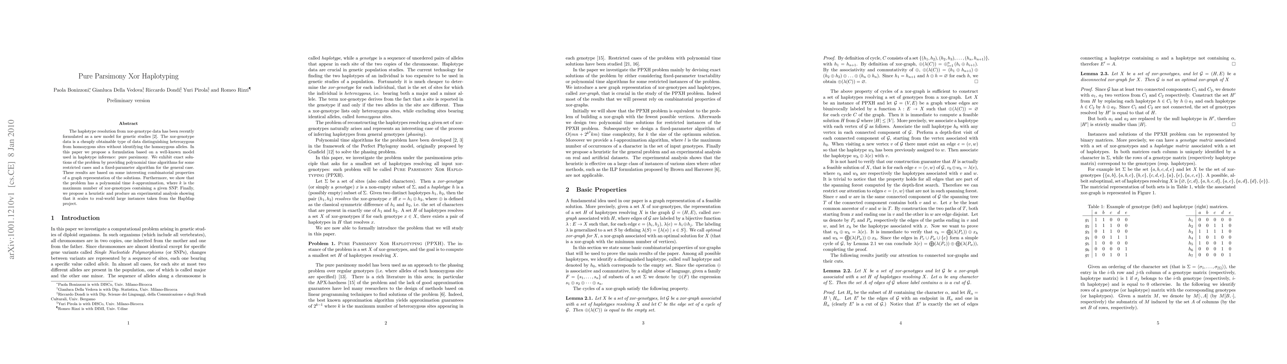 The haplotype resolution from xor-genotype data has been recently formulated as a new model for genetic studies. The xor-genotype data is a cheaply obtainable type of data distinguishing heterozygous from homozygous sites without identifying the homozygous alleles. In this paper we propose a formulation based on a well-known model used in haplotype inference: pure parsimony. We exhibit exact solutions of the problem by providing polynomial time algorithms for some restricted cases and a fixed-parameter algorithm for the general case. These results are based on some interesting combinatorial properties of a graph representation of the solutions. Furthermore, we show that the problem has a polynomial time k-approximation, where k is the maximum number of xor-genotypes containing a given SNP. Finally, we propose a heuristic and produce an experimental analysis showing that it scales to real-world large instances taken from the HapMap project.