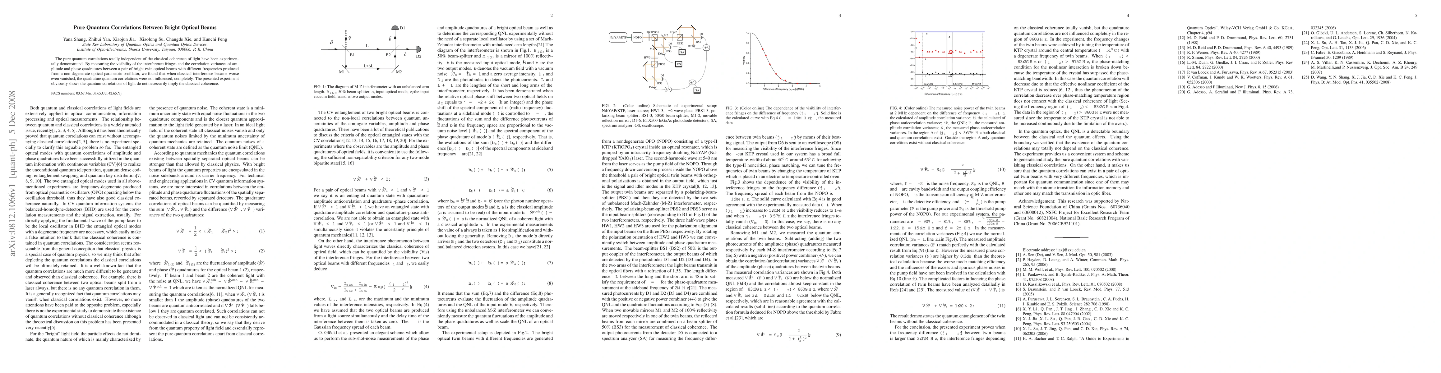 This paper demonstrates pure quantum correlations in bright optical beams independent of classical coherence, showing that quantum interference fringes remain unaffected even when classical interference diminishes. The study highlights the distinct nature of quantum correlations in light.