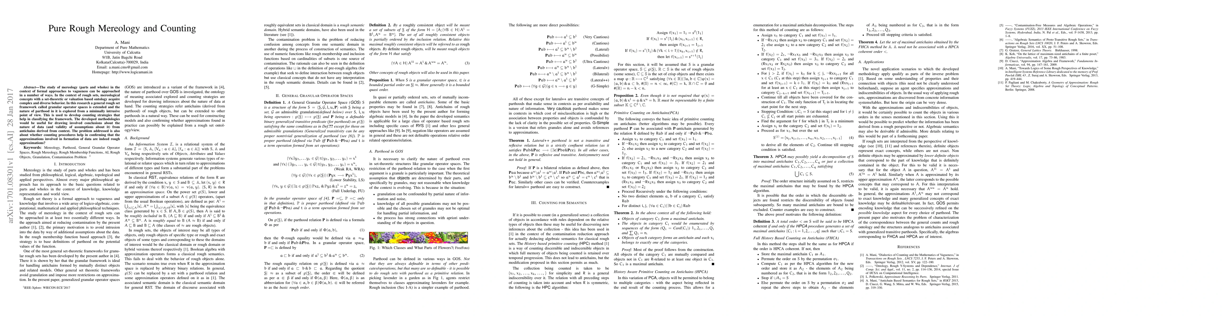 The study of mereology (parts and wholes) in the context of formal approaches to vagueness can be approached in a number of ways. In the context of rough sets, mereological concepts with a set-theoretic or valuation based ontology acquire complex and diverse behavior. In this research a general rough set framework called granular operator spaces is extended and the nature of parthood in it is explored from a minimally intrusive point of view. This is used to develop counting strategies that help in classifying the framework. The developed methodologies would be useful for drawing involved conclusions about the nature of data (and validity of assumptions about it) from antichains derived from context. The problem addressed is also about whether counting procedures help in confirming that the approximations involved in formation of data are indeed rough approximations?