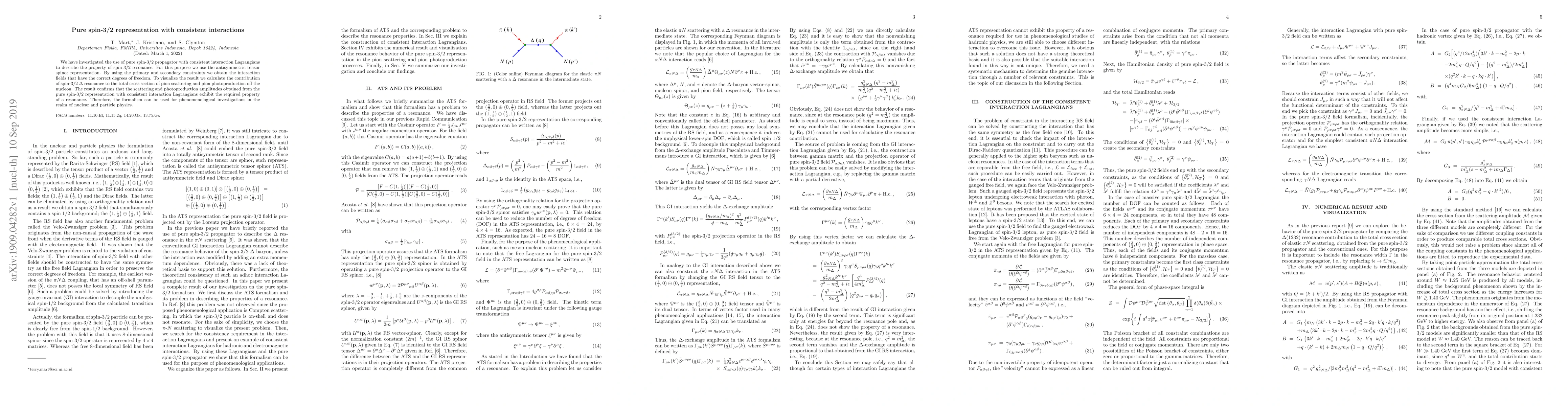 This paper explores the pure spin-3/2 representation using consistent interaction Lagrangians and antisymmetric tensor spinors to describe spin-3/2 resonances. The study confirms that the formalism accurately predicts the properties of spin-3/2 $\Delta$ resonance in pion scattering and photoproduction, validating its use in nuclear and particle physics.