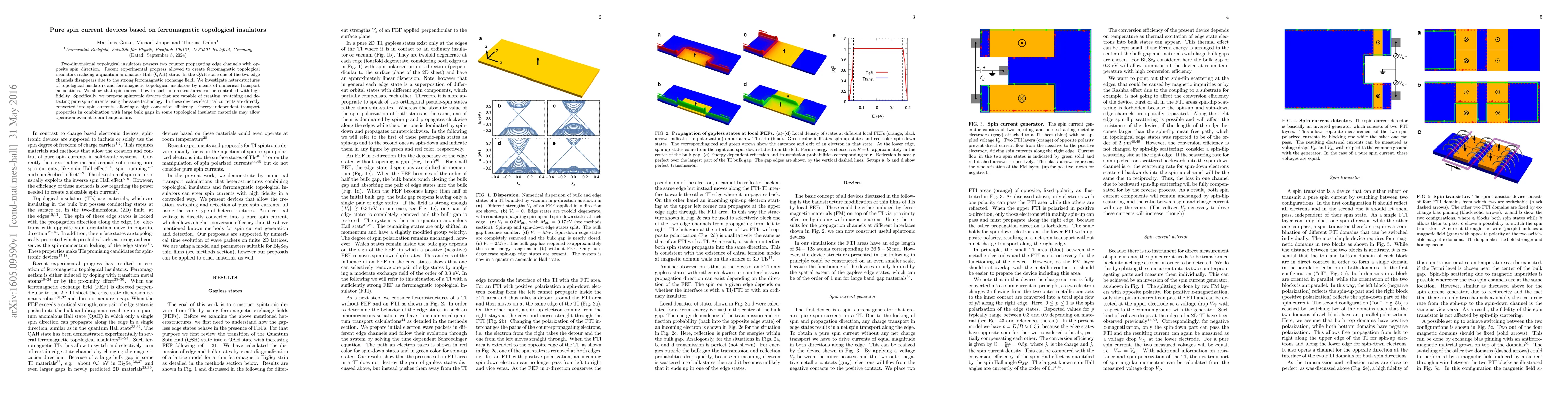 This paper explores the development of pure spin current devices based on ferromagnetic topological insulators that realize a quantum anomalous Hall state. Numerical transport calculations demonstrate high-fidelity control of spin current flow in heterostructures, proposing spintronic devices for efficient conversion of electrical to spin currents with potential for room temperature operation.