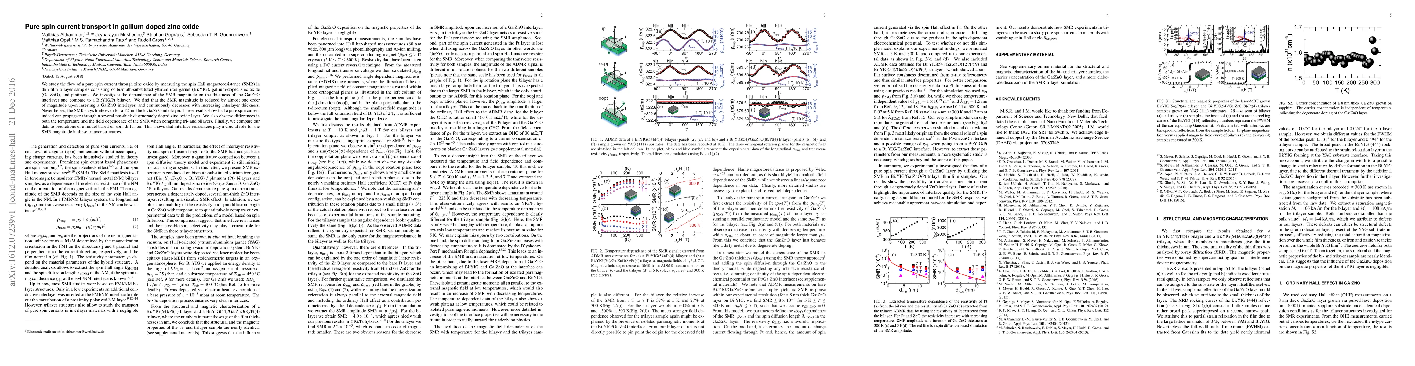 This study investigates the spin Hall magnetoresistance (SMR) in trilayer samples with a Ga:ZnO interlayer, finding that while the SMR magnitude decreases significantly with Ga:ZnO thickness, it remains finite even for a 12 nm layer, indicating pure spin current transport through doped zinc oxide. Interface resistances are identified as crucial for SMR magnitude in these structures.
