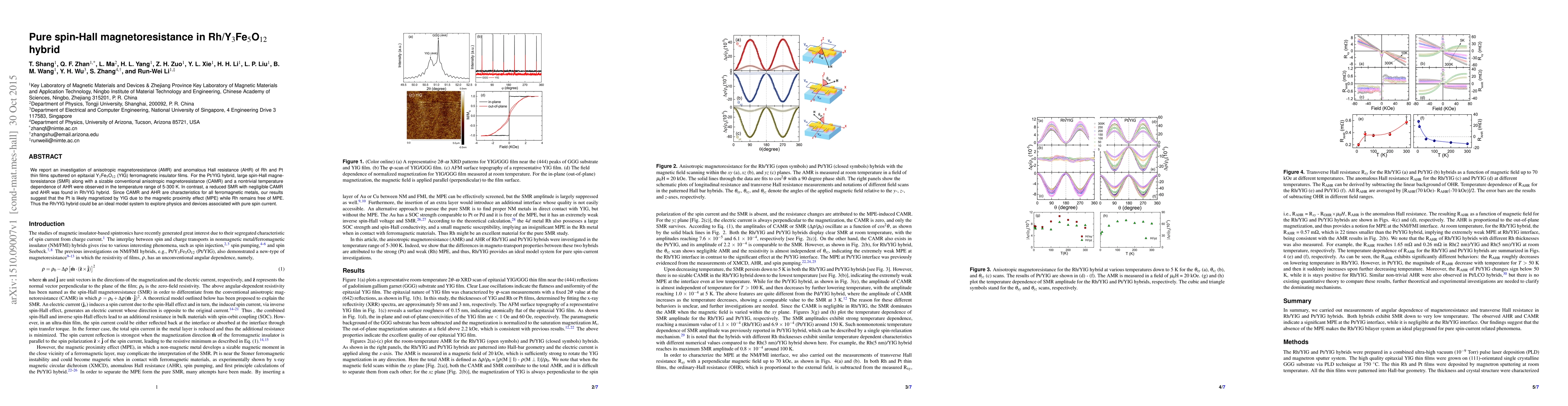 This paper investigates the spin-Hall magnetoresistance in Pt/YIG and Rh/YIG hybrid systems, revealing significant spin-Hall magnetoresistance in Pt/YIG due to magnetic proximity effect, while Rh/YIG exhibits reduced spin-Hall magnetoresistance, making it a suitable model for pure spin current studies.