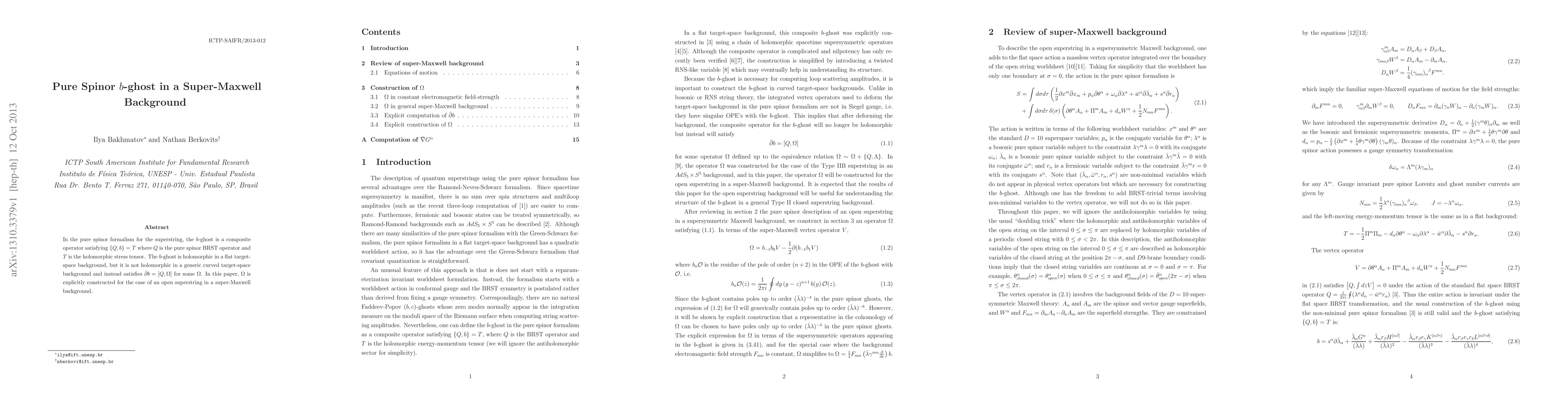This paper constructs the pure spinor b-ghost operator for an open superstring in a super-Maxwell background, showing that it no longer remains holomorphic but satisfies $\bar\partial b = [Q, \Omega]$ with $\Omega$ explicitly determined.